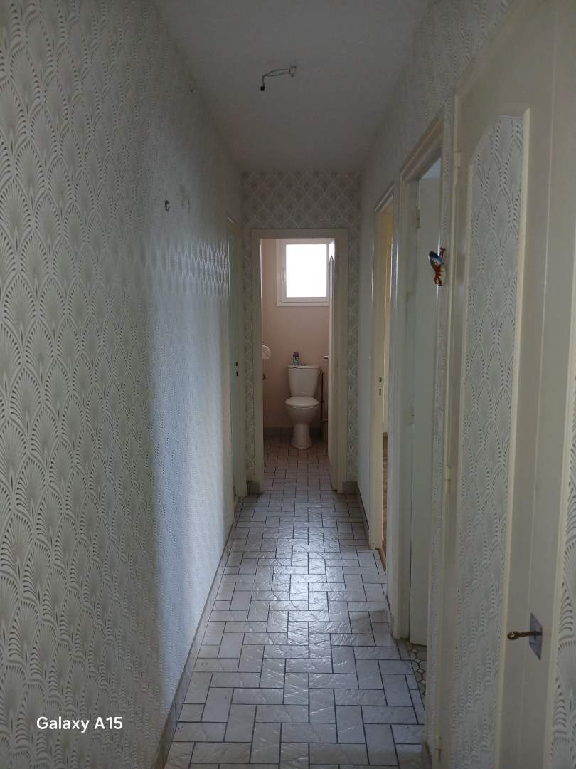 Entrée, couloir avec placards, cuisine, salle à manger et salon, salle d’eau, deux chambres dont une avec placards, wc.