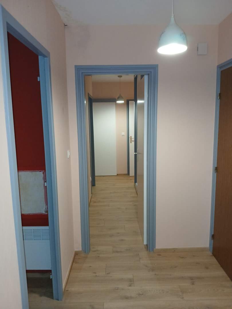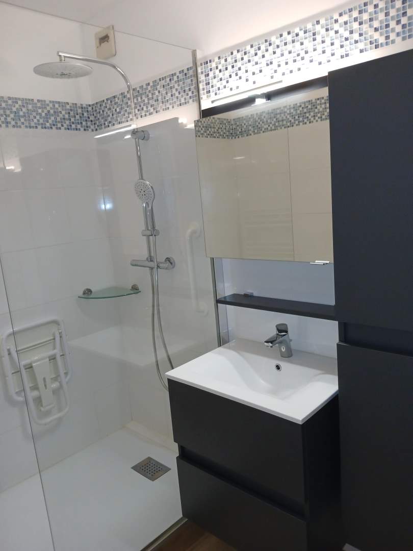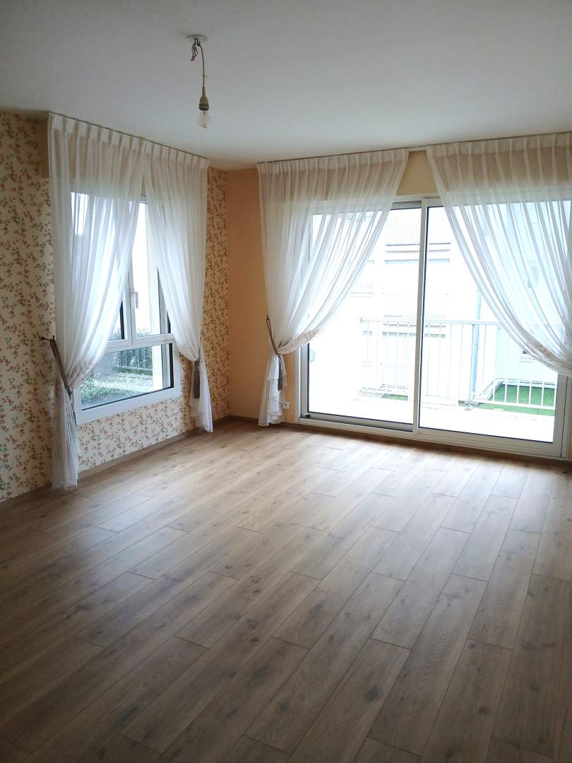 Entrée et couloir avec placards, cuisine aménagée, salle à manger et salon, deux chambres, salle d’eau avec douche à l’italienne,wc. Balcon.