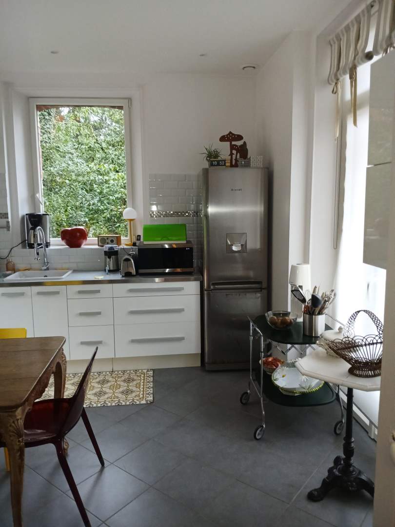 - En rez de chaussée : entrée, cuisine, salle à manger et salon, wc avec lavabo.