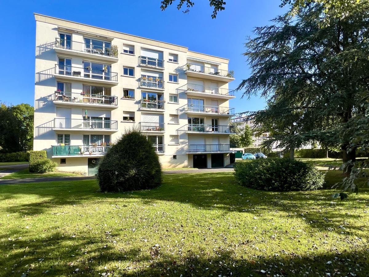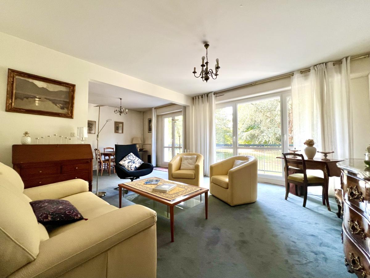 Appartement F4 de 85 m² comprenant entrée, cuisine, séjour salon de 33 m² avec balcon de 14 m² exposé sud, vue dégagée sur le parc, dégagement avec placards, wc, salle d'eau, deux chambres. Une cave. Une place de parking. Un GARAGE.