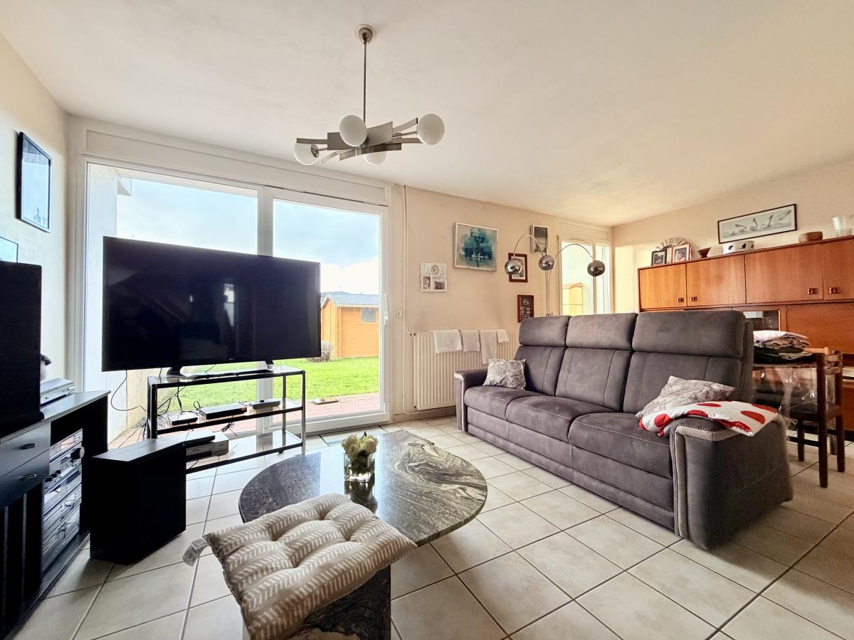 Rue des Acacias, maison mitoyenne de 83 m² comprenant entrée, buanderie, wc, cuisine, séjour-salon. A l'étage, palier, salle d'eau, dressing, trois chambres.