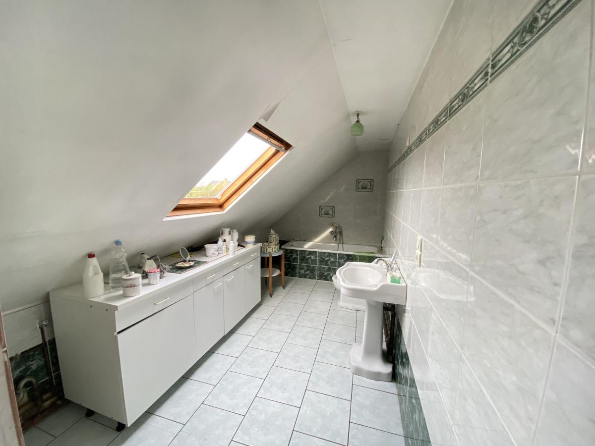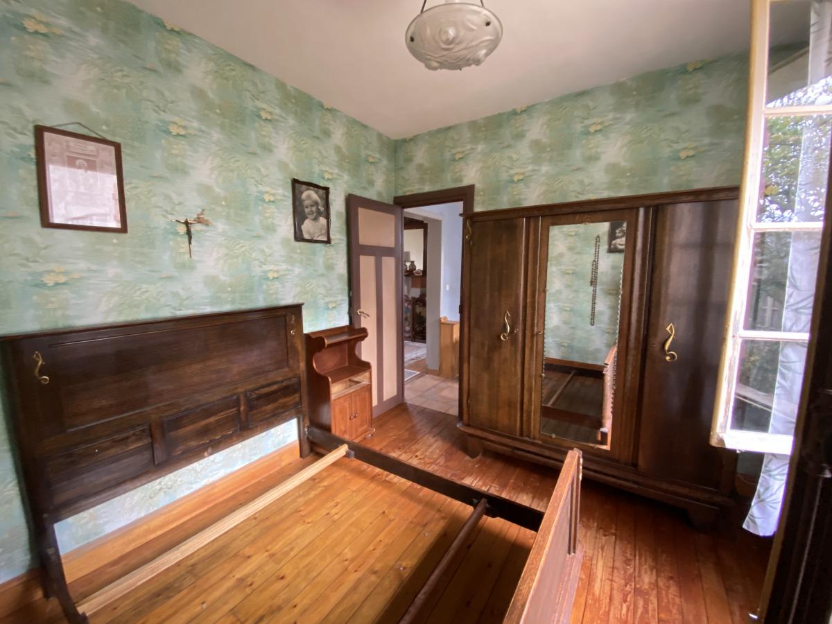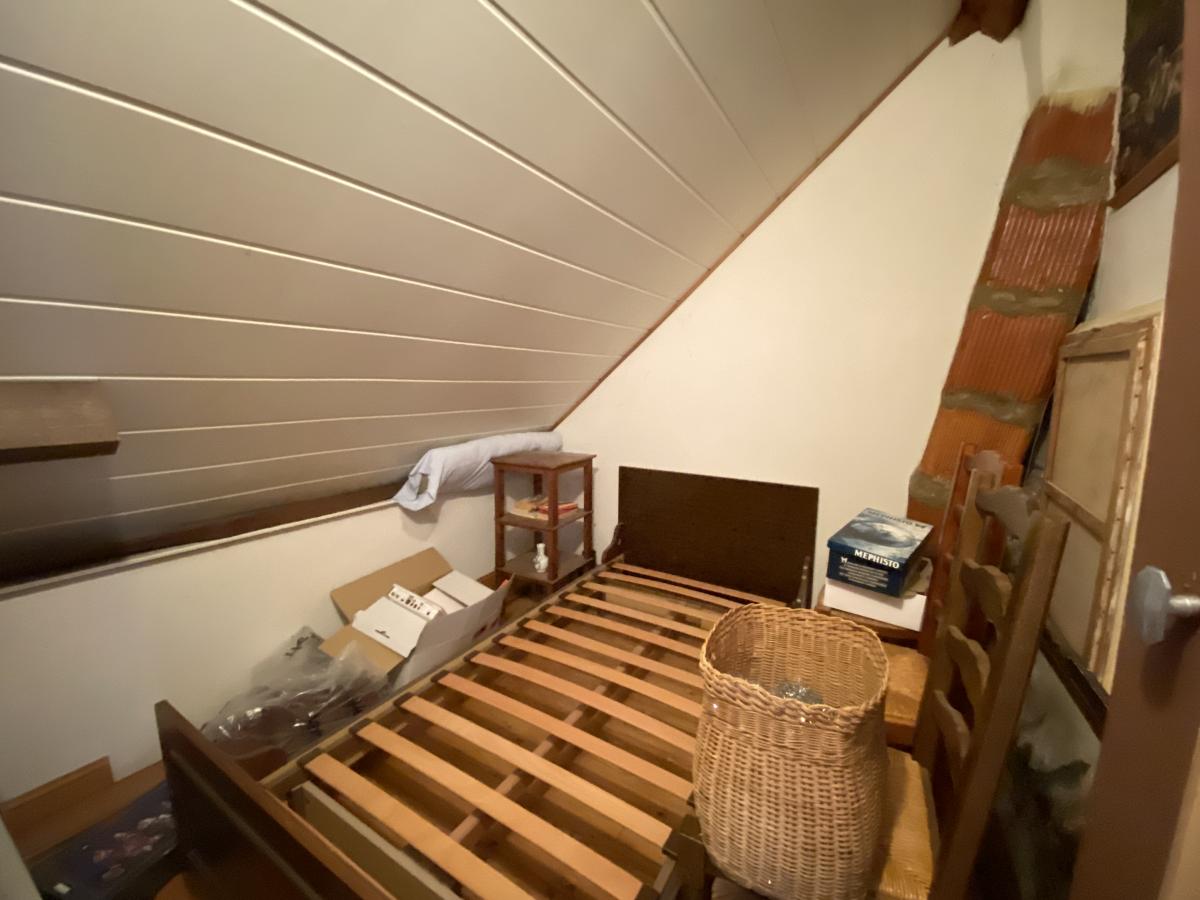 A l'ETAGE : PALIER, DEUX CHAMBRES DONT UNE AVEC TERRASSE, UNE PIECE AVEUGLE, SALLE DE BAINS, DEGAGEMENT ET WC.