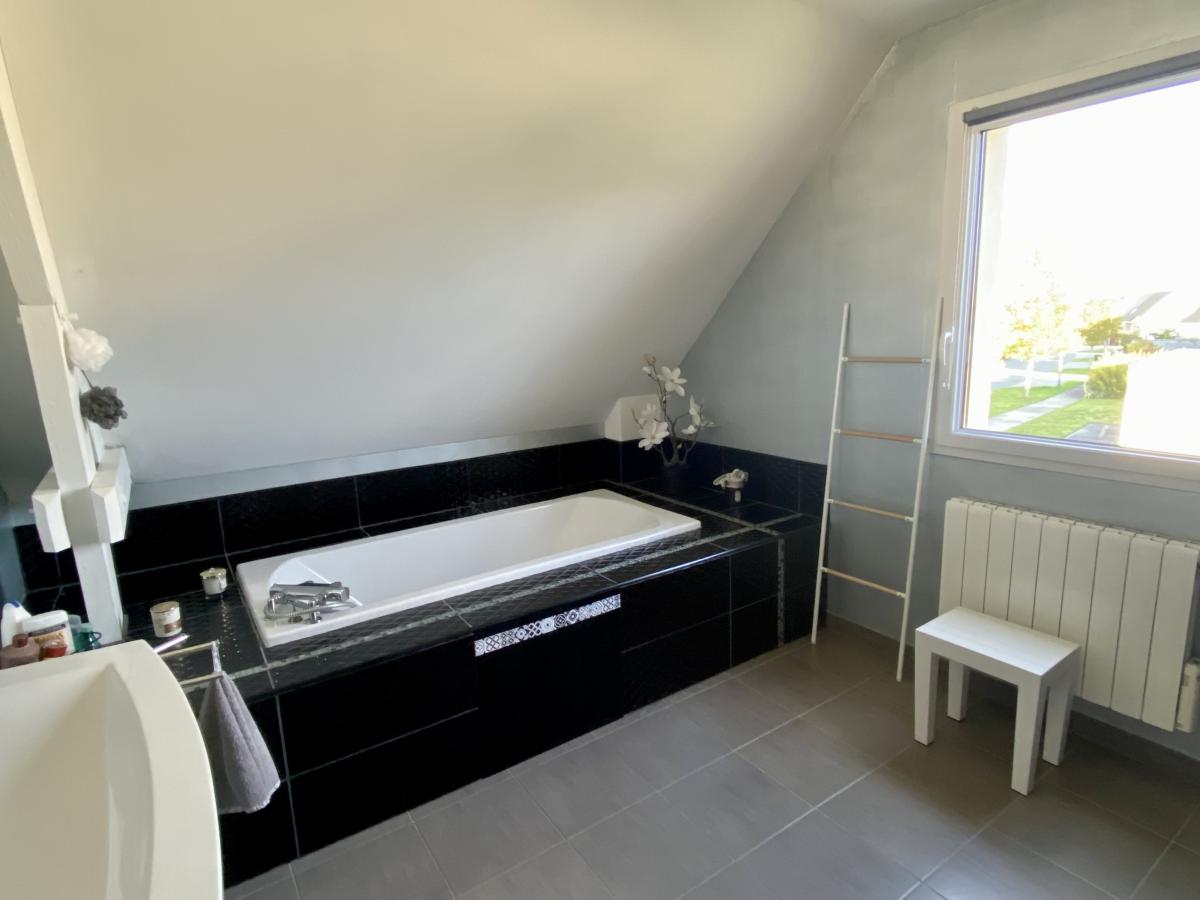 Superbe maison contemporaine de 2013 avec VIE DE PLAIN-PIED comprenant au RDC entrée avec placards, wc, vaste pièce vie ouverte avec cuisine A/E et ilot central, suite parentale avec dressing et salle d’eau.