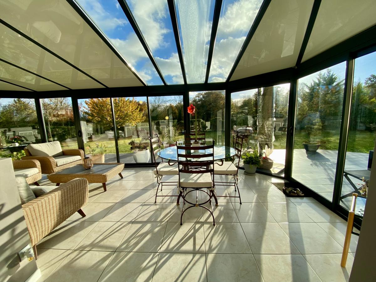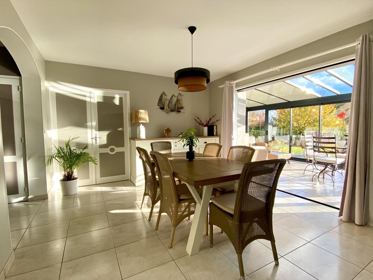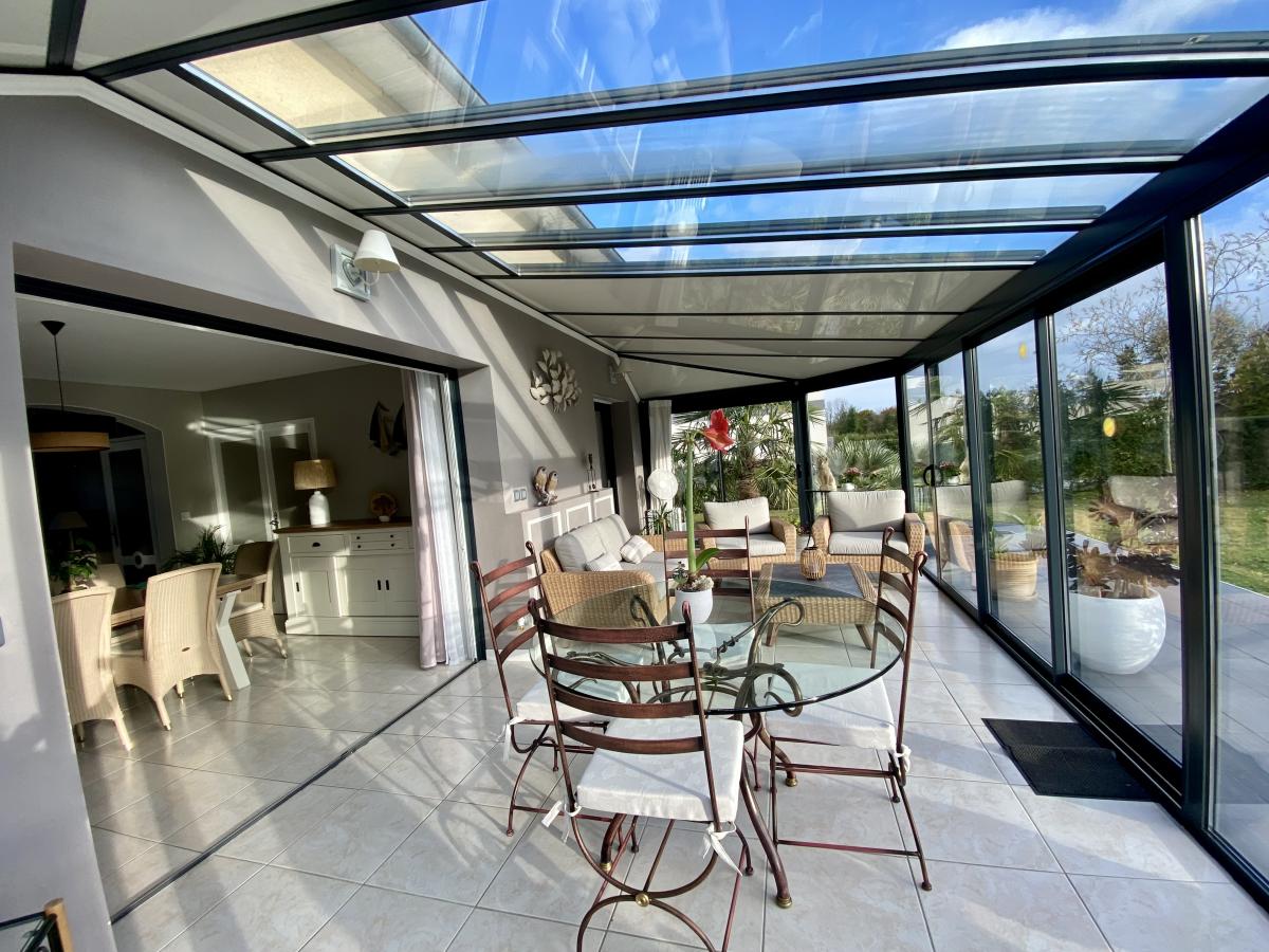 Vous apprécierez la véranda et sa vue dégagée sur un espace boisé ainsi que sa suite parentale comprenant chambre, dressing et salle d'eau attenante. L’escalier qui mène à l’étage est réalisé avec de beaux matériaux : pierre et fer forgé.