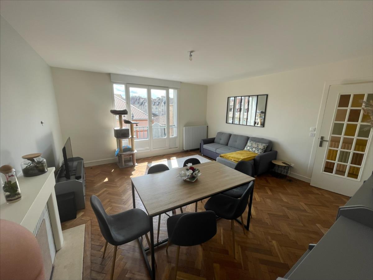 'Chez des Notaires à Mes Côtés',  Appartement  Lumineux dans l'hyper centre de FALAISE,  entièrement  rénovée avec goût, d'une surface d'env 71 m², comprenant une entrée séjour exposée Sud Ouest, cuisine aménagée et équipée, 2 chambres, salle d'eau récente, wc.Grenier et Cave. Les informations sur les risques auxquels ce bien est exposé sont disponibles sur le site Géorisques : www. georisques. gouv. fr Consultez nos tarifs : https://desnotairesamescotes.notaires.fr/tarifs/?sfw=pass1692689660