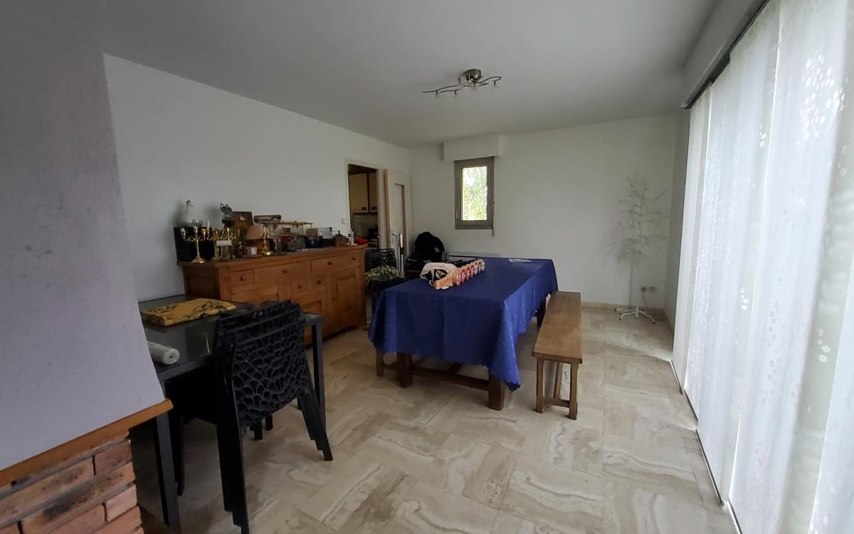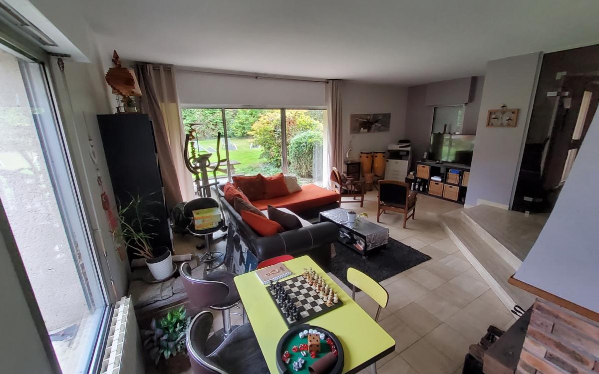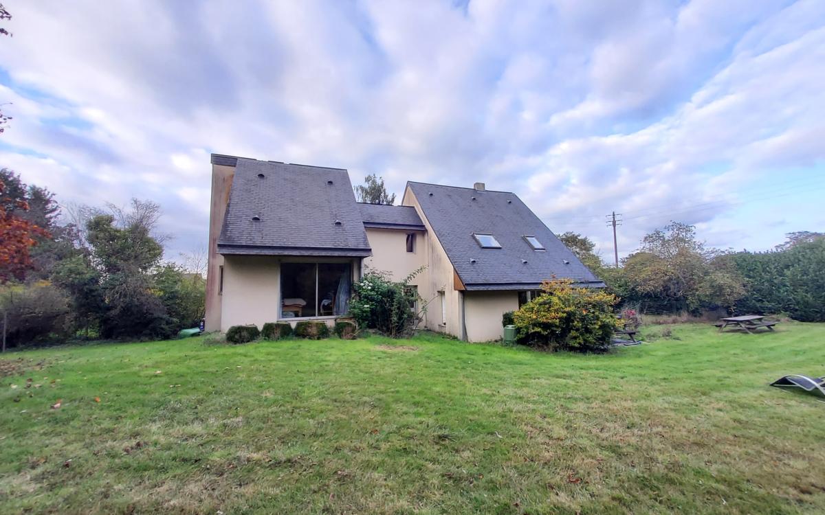 Au rez-de-chaussée : cuisine, salon avec cheminée, salle à manger, chambre, bureau, salle de bains et W.C, garage.
