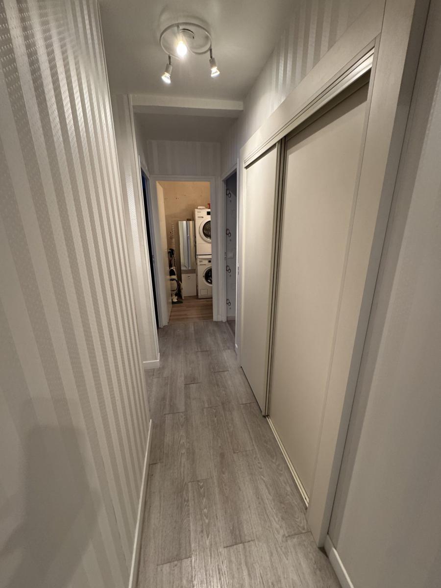 Entrée, séjour-salon avec balcon exposé ouest, cuisine aménagée et équipée, cellier, couloir avec placards, 2 chambres, salle d'eau, wc et buanderie.
