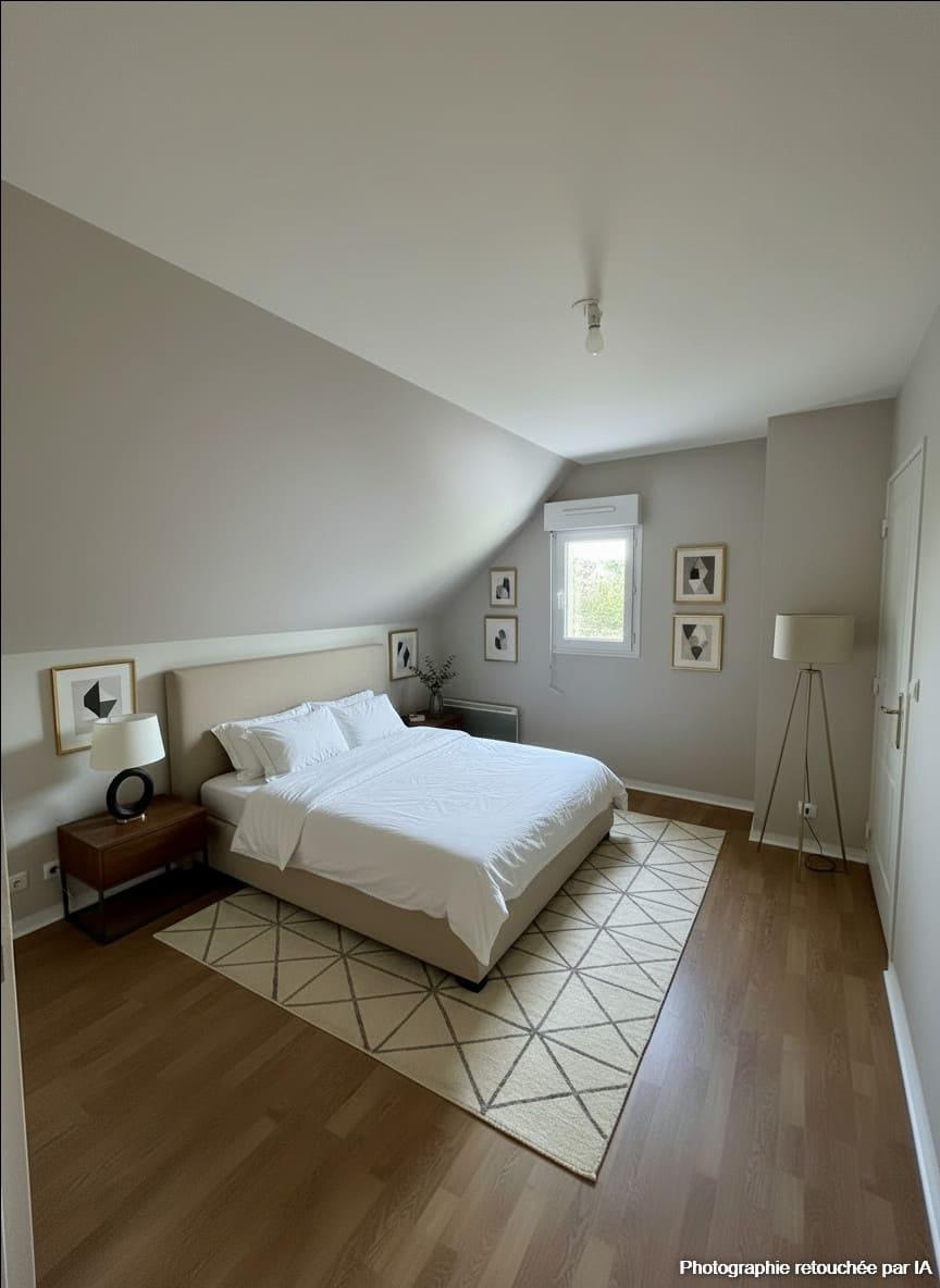 À l’étage, l’espace nuit propose 3 chambres, au calme, et une salle de bains, permettant une séparation confortable entre les espaces jour et nuit.