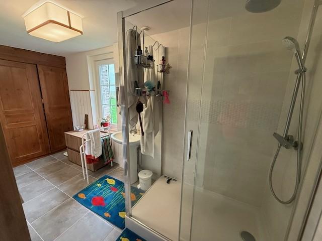- A l’étage : grand grenier aménageable. Chauffage par pompe à chaleur et plancher chauffant pour partie et éledtrique pour autre partie.