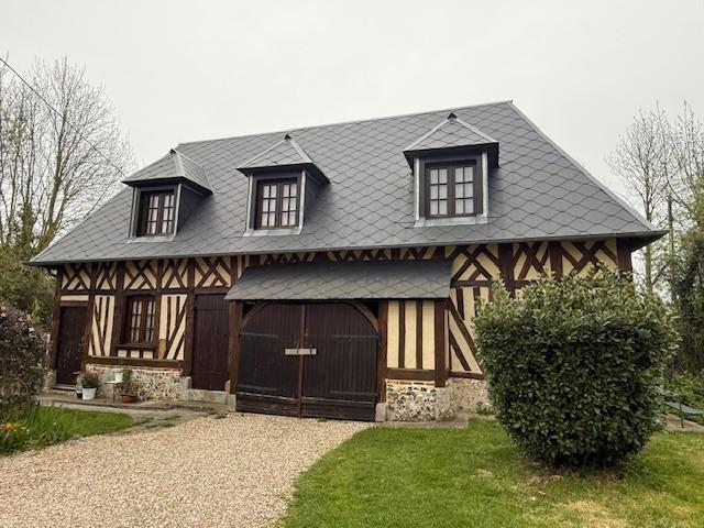 Entre Orbec et Thiberville, Une maison à usage d’habitation aux prestations de qualités, dans un bel environnement , construite en briques et couverte en ardoises comprenant :