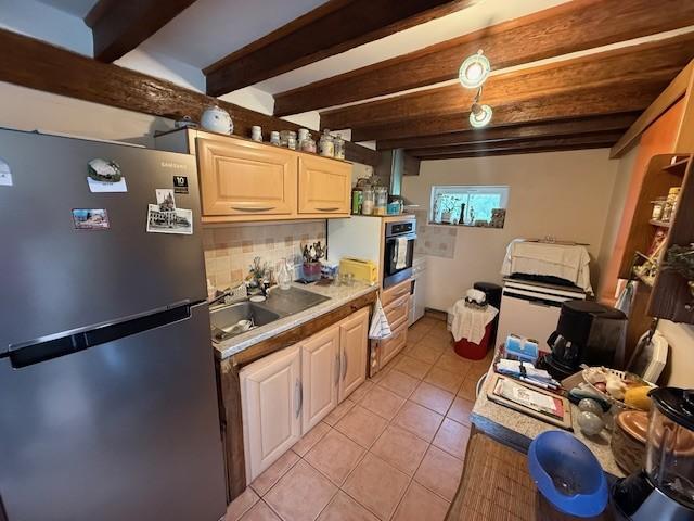 - Au rez-de-chaussée : cuisine aménagée, arrière-cuisine, pompe à chaleur air eau, wc, salle-salon avec cheminée.