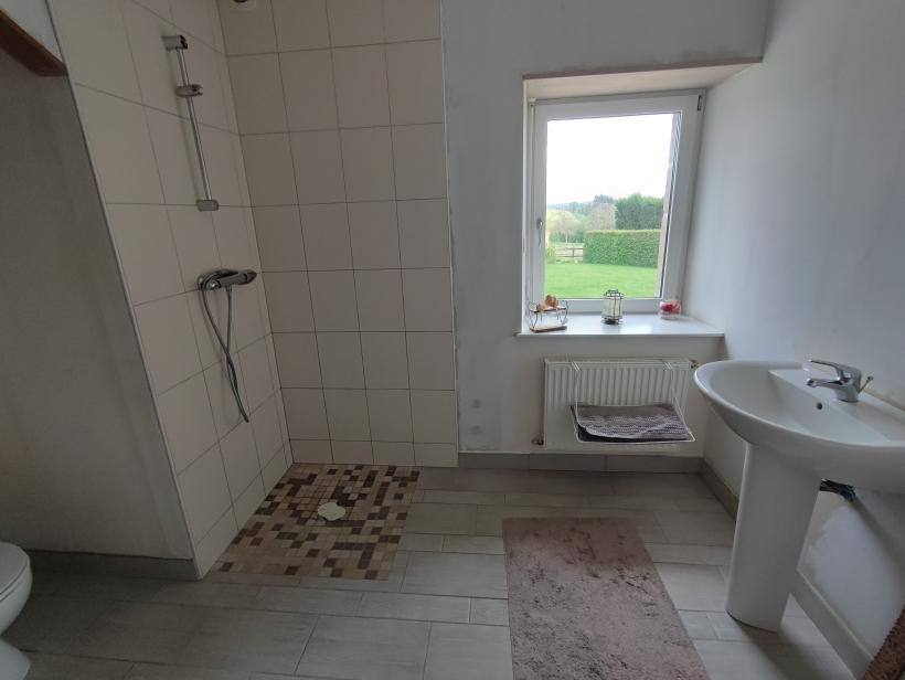 - au rez-de-chaussée : une belle pièce de vie avec cuisine aménagée, un couloir desservant une salle d'eau et WC, une buanderie.