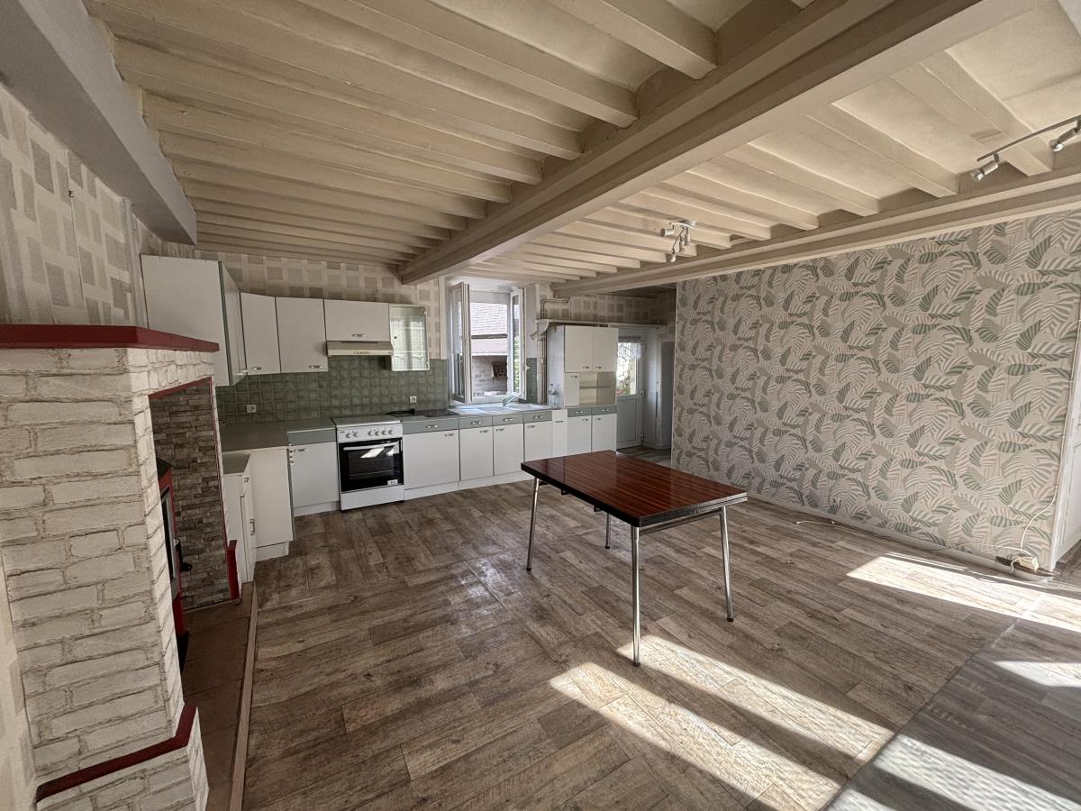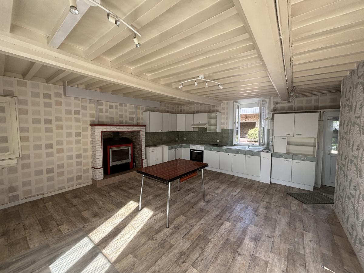 Au Rdc: Entrée, pièce à vivre avec cuisine A/E et poêle à bois, séjour, arrière cuisine, cellier, salle d'eau et wc