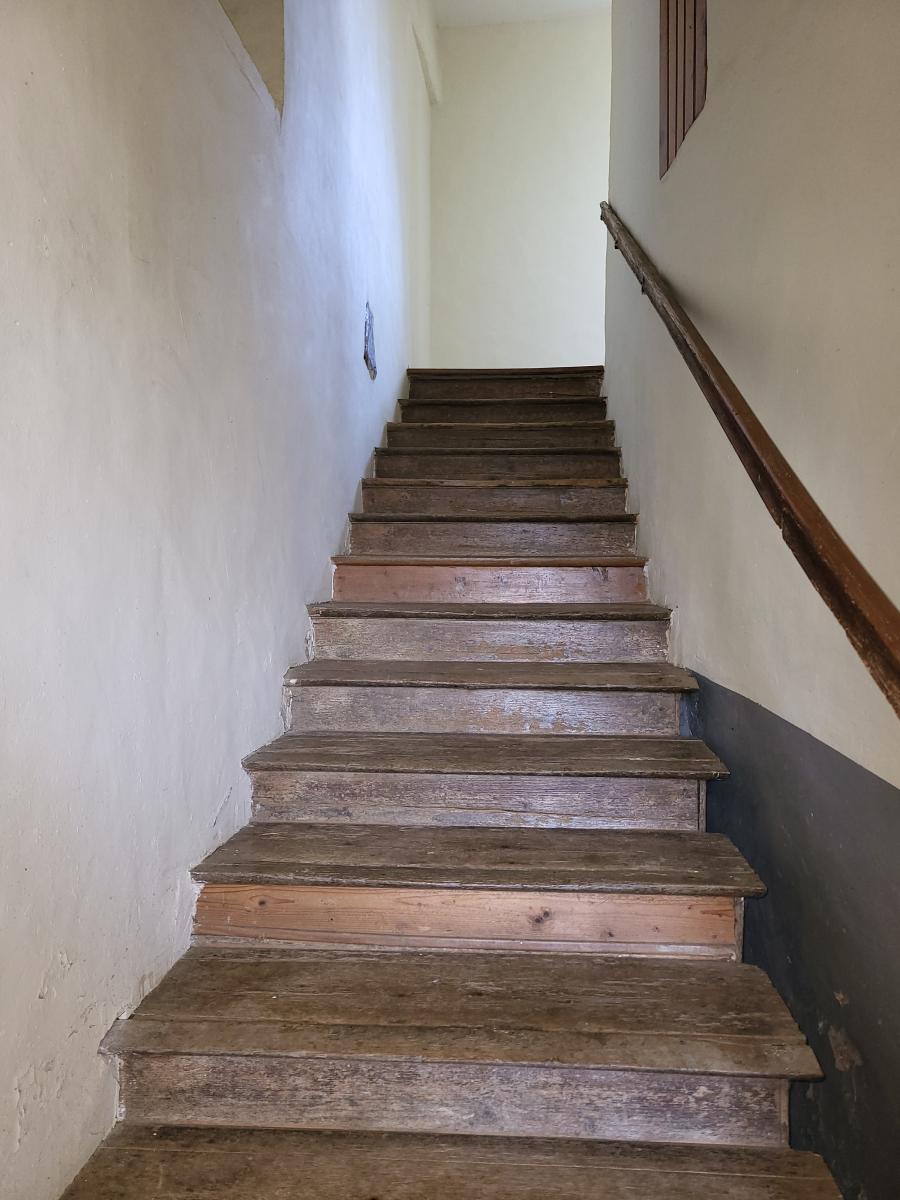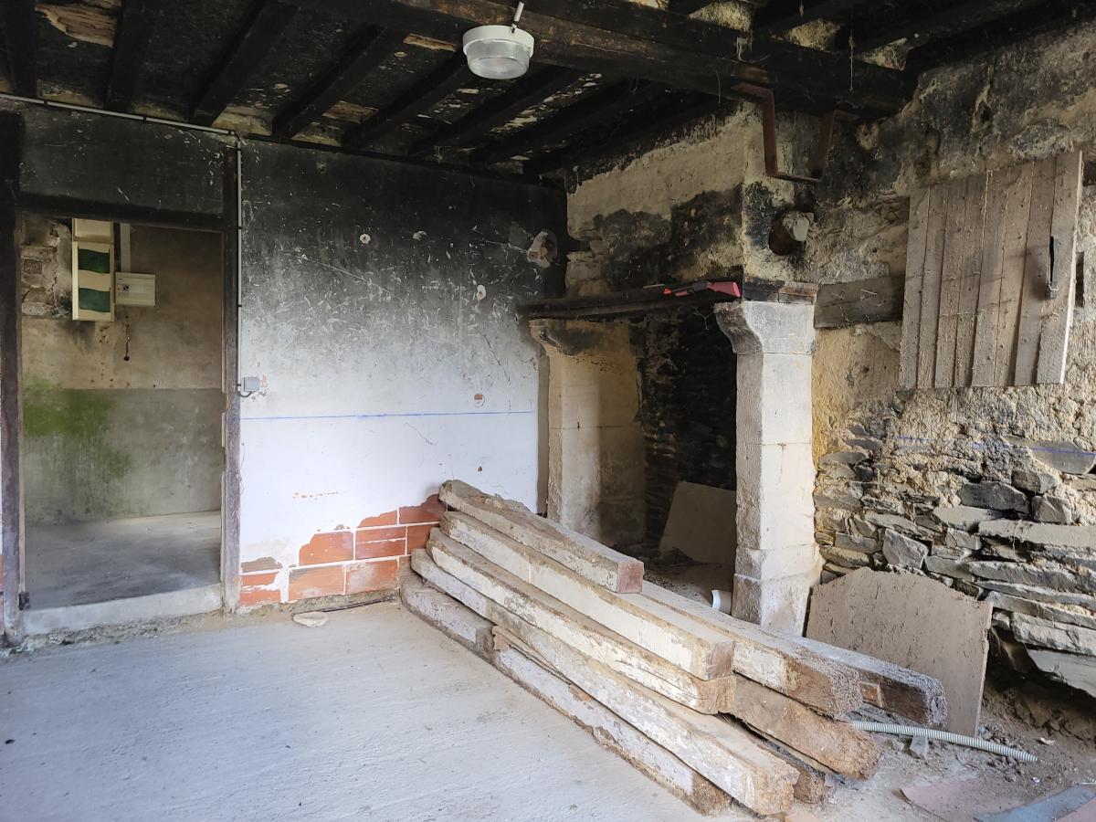 Au rez-de-chaussée : entrée, séjour-salon avec poêle à bois, cuisine, salle d'eau avec wc