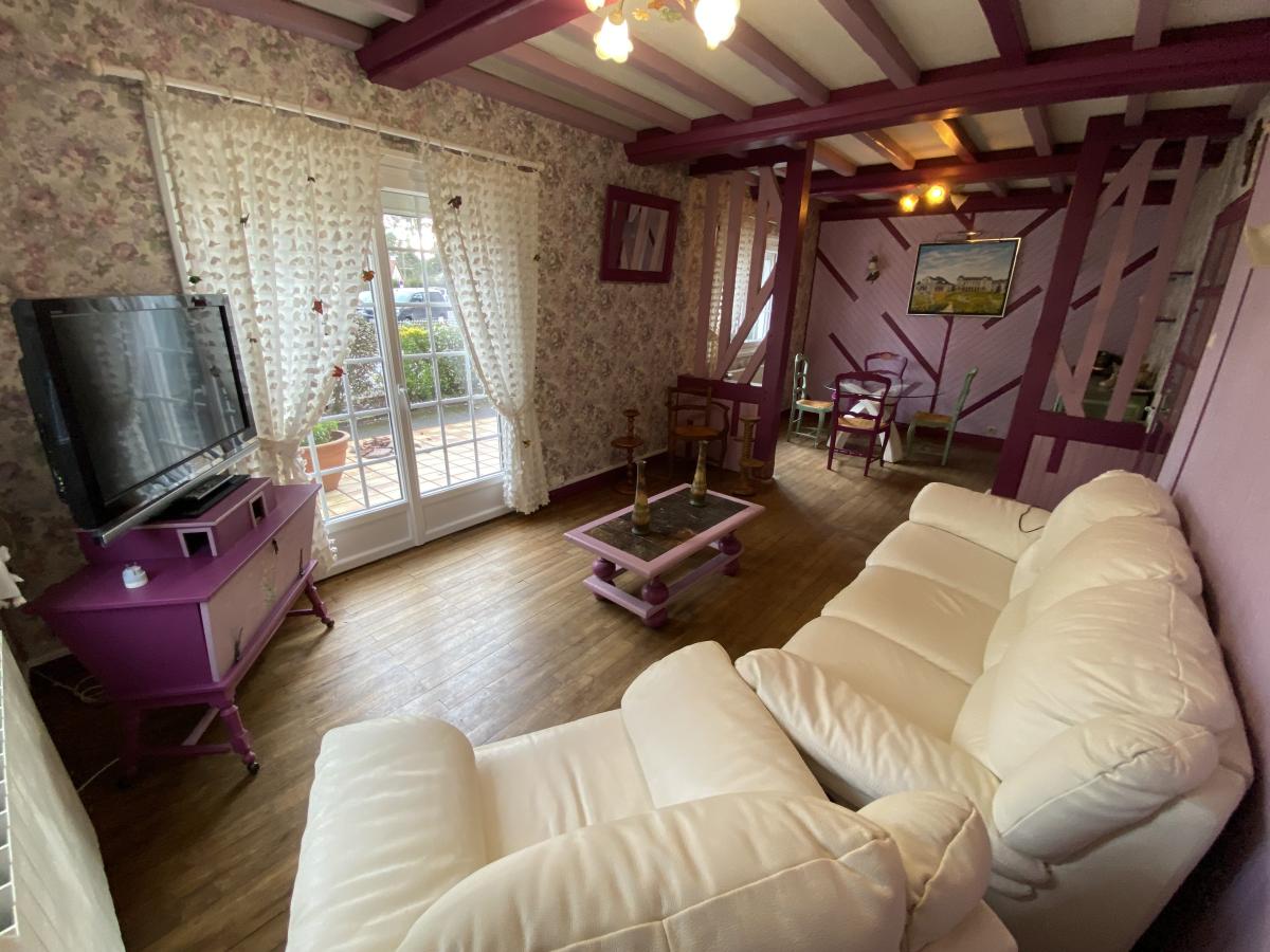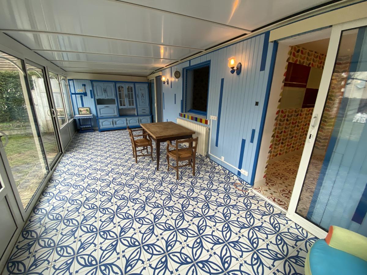 MERVILLE FRANCEVILLE PLAGE, maison de 130m² environ comprenant, entrée, salon/séjour (26m²), deux cuisines, chambre avec placards, salle d'eau avec wc, véranda avec poêle à granulés (23m²). A l'étage, salle de bains, deux chambres. Dépendances, jardin, terrain de 404m².