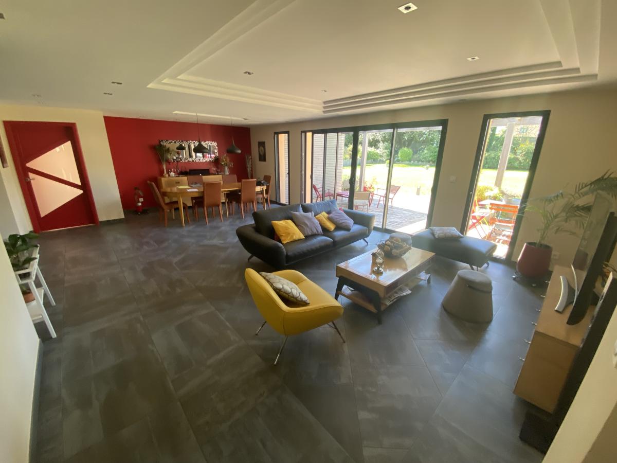 Maison contemporaine de 154m² au calme comprenant, entrée, salon/séjour, cuisine aménagée et équipée ouverte sur le séjour, un bureau avec placards, 3 chambres dont deux avec dressing, salle d'eau avec WC, arrière cuisine, WC. A l'étage, combles à finir d'emménager (possibilité de faire deux chambres et une salle de bains). Belle terrasse plein sud, quart port pour deux voitures, abri de jardin. Terrain de 1125m².
