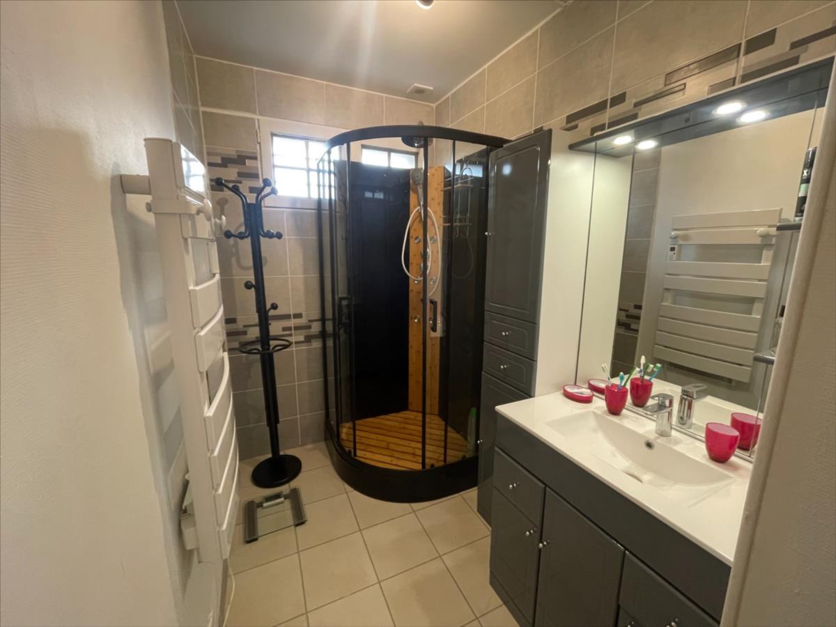 couloir, placard, wc, sde aménagée cuisine aménagée et équipée, 2 chambres, salle