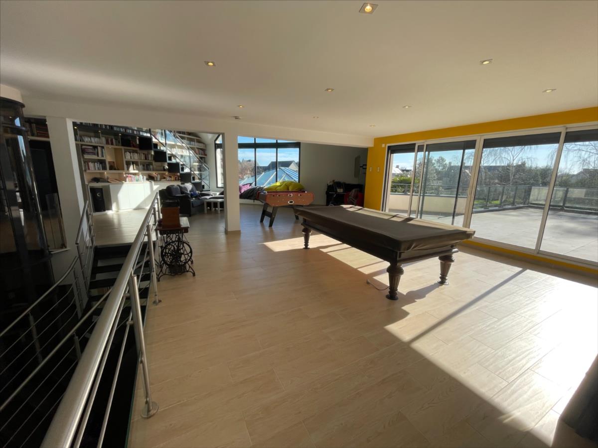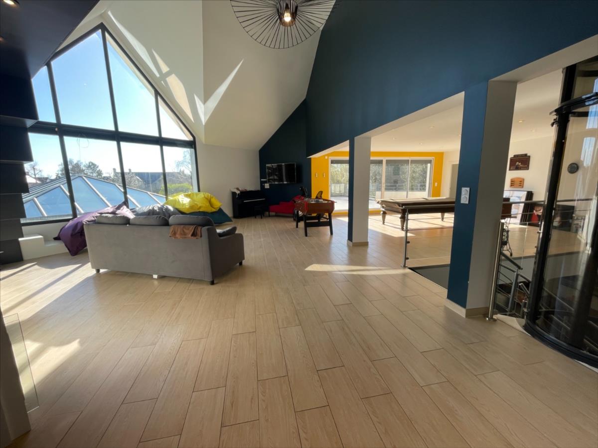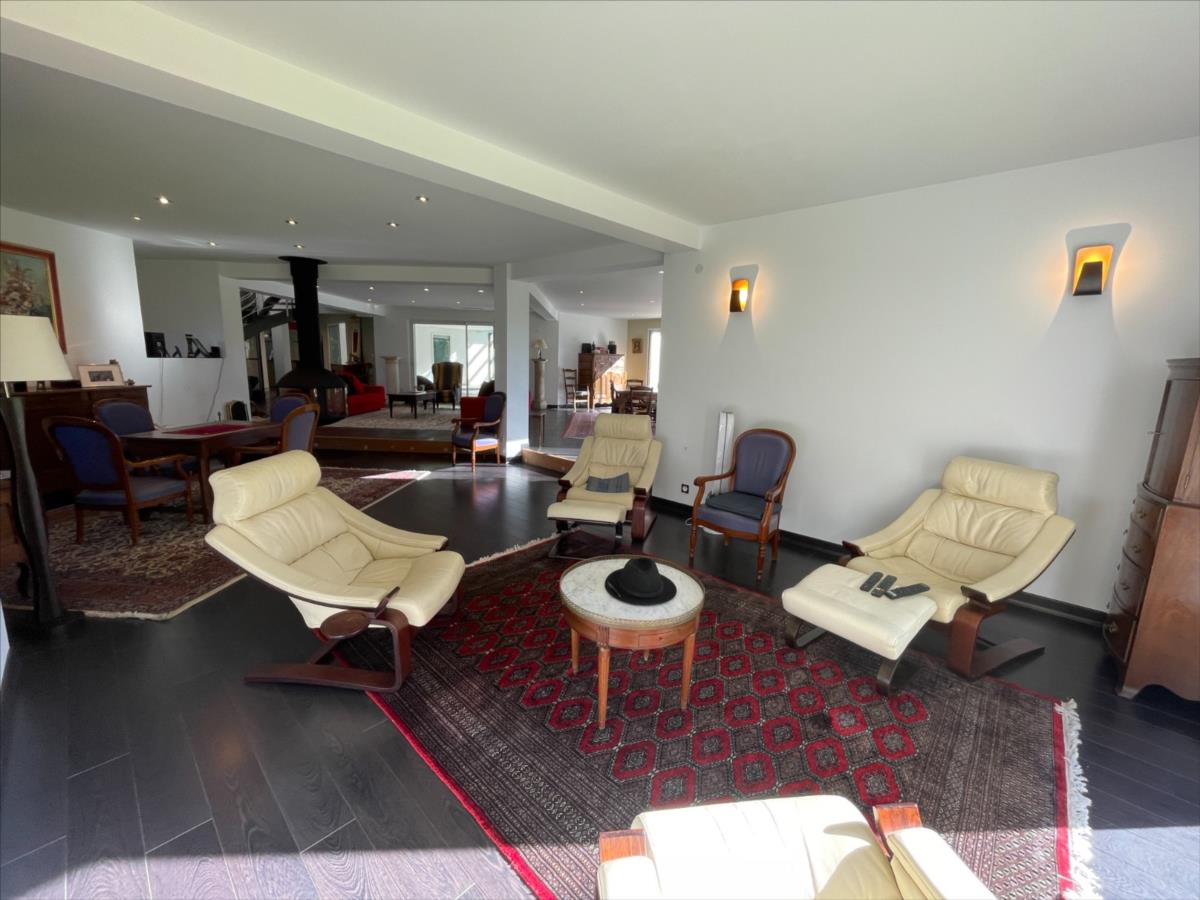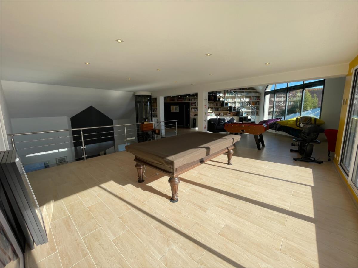 ascenseur, bureau 18m², 1 suite : chambre 20m²+ sdb (baignoire et douche) placard, piscine 40m² intérieure 120m² chauffée avec sde et WC,