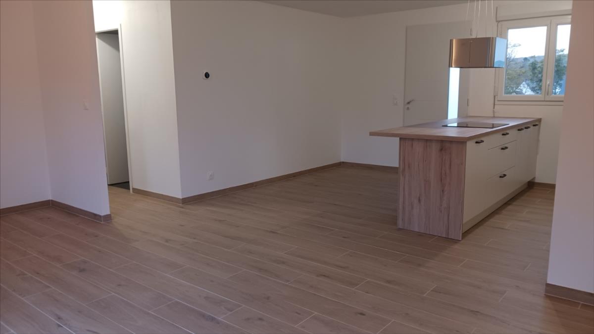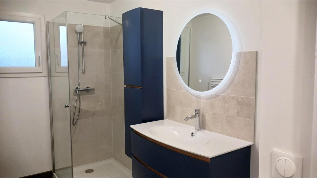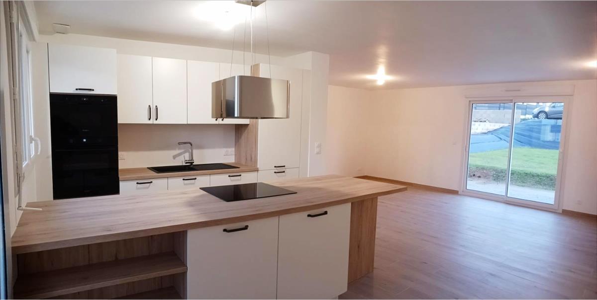 - au rez-de-chaussée : salle-salon ouvert sur une cuisine entièrement aménagée et équipée (jamais servie), deux chambres, salle d'eau, WC.