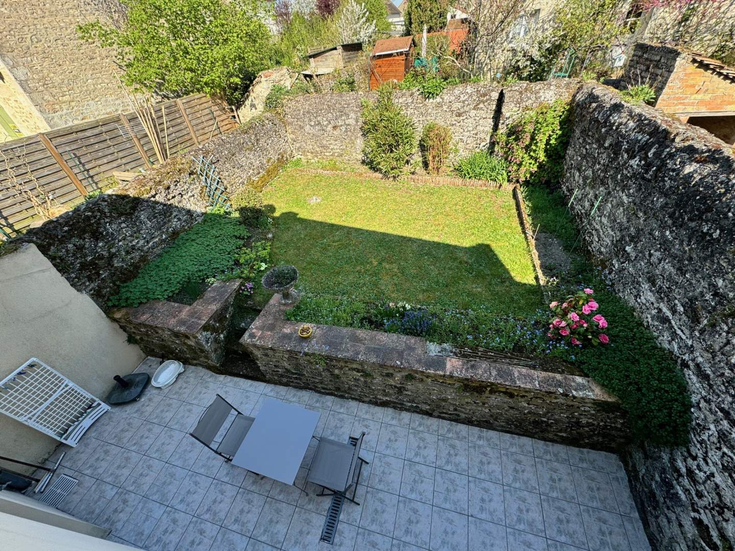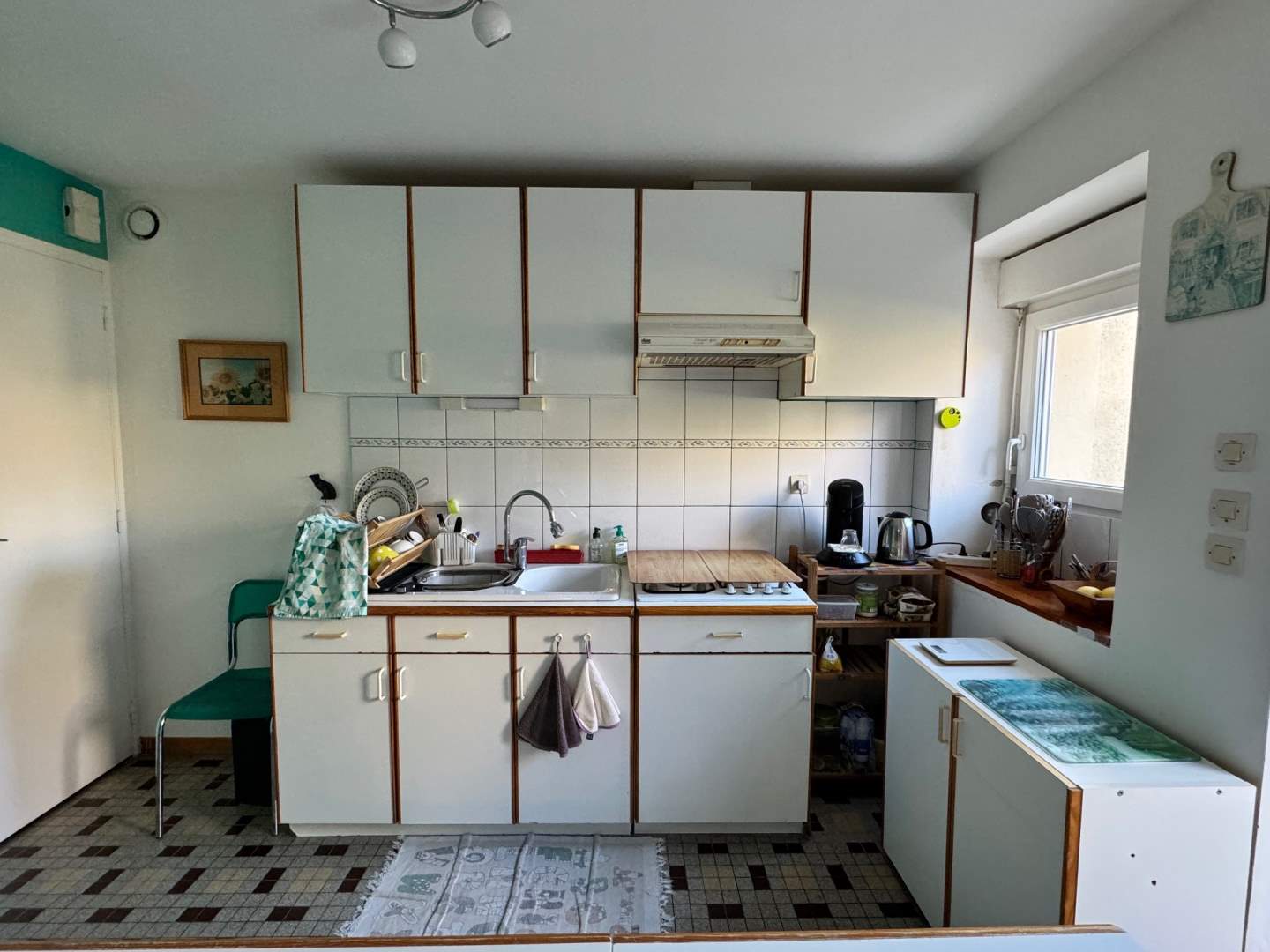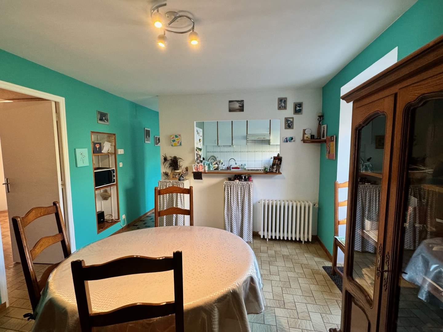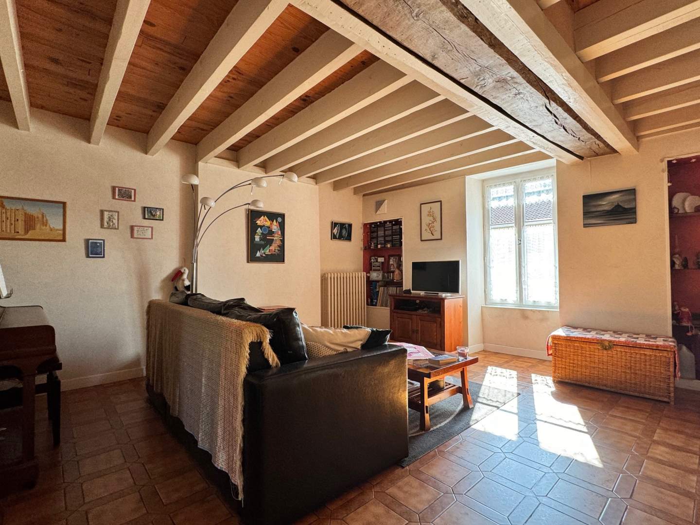 Au rez-de-chaussée : une entrée avec placards, un wc avec lave-mains, un salon avec poutres, une salle à manger ouverte sur la cuisine avec accès sur la terrasse et le jardin.