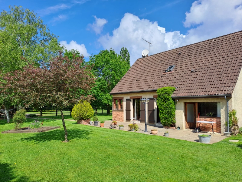 A proximité immédiate de tous commerces et services, une maison de ville à la campagne comprenant une grande pièce de vie lumineuse composée d'une cuisine aménagée et équipée ouverte sur la salle à manger et le salon (poêle à bois), buanderie, wc, bureau, cellier.