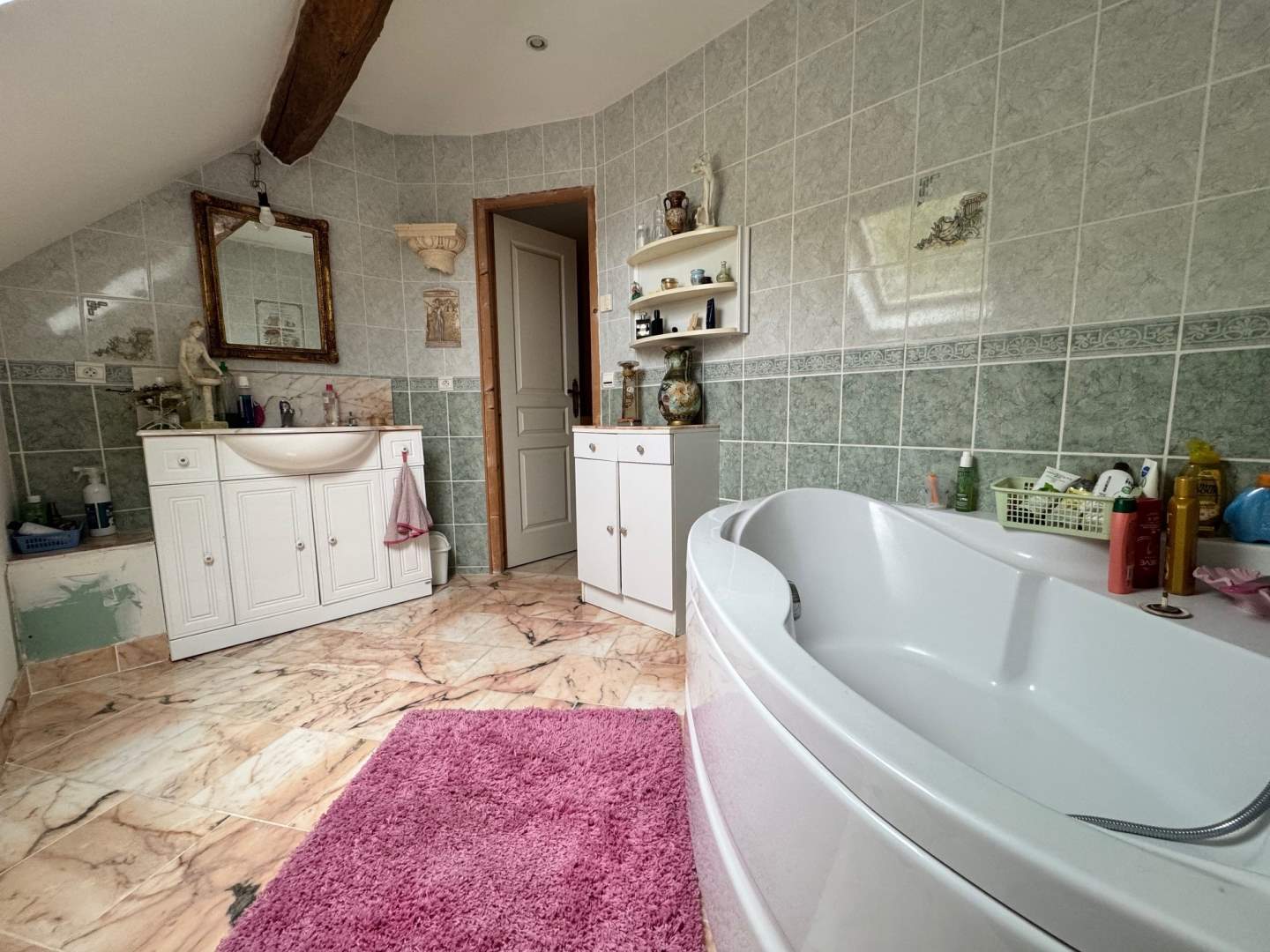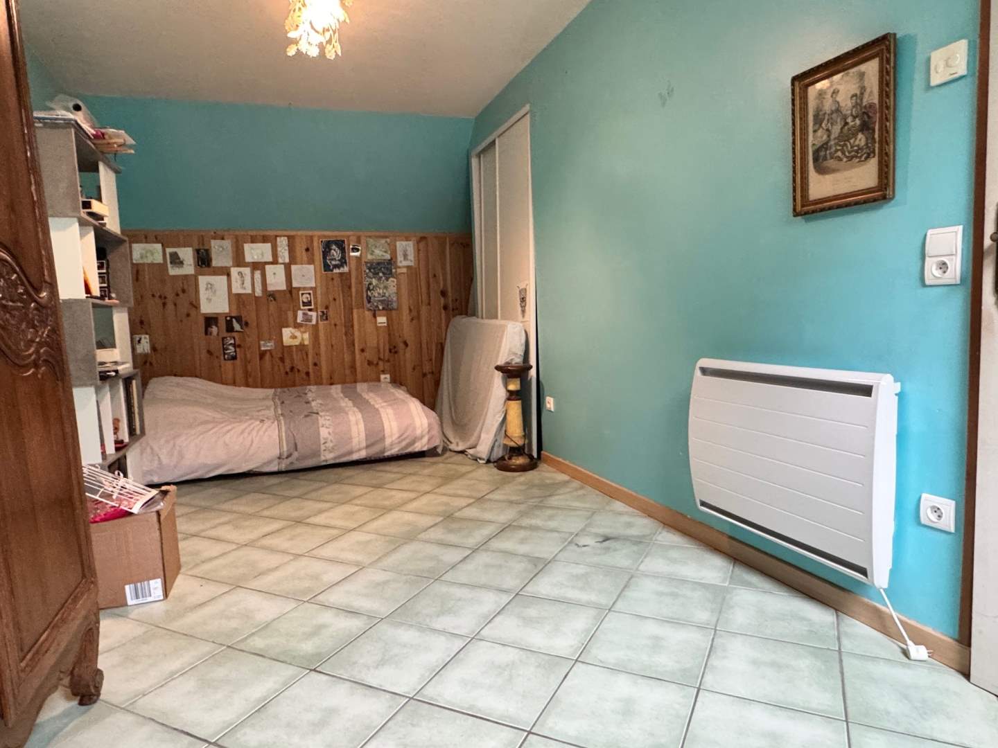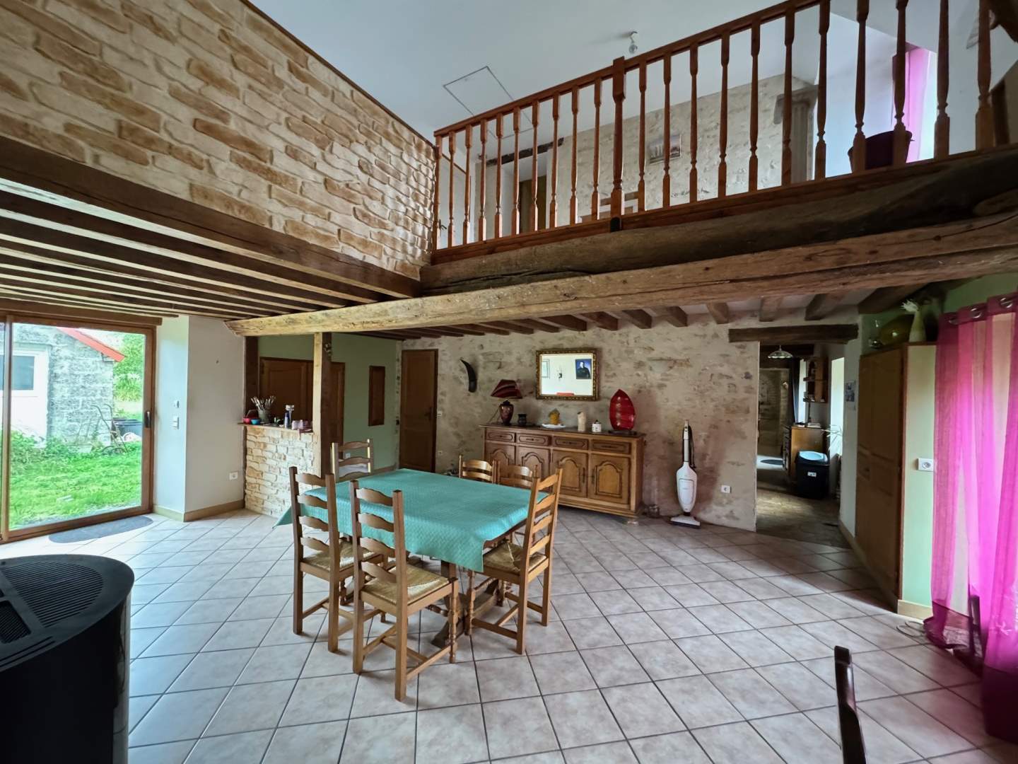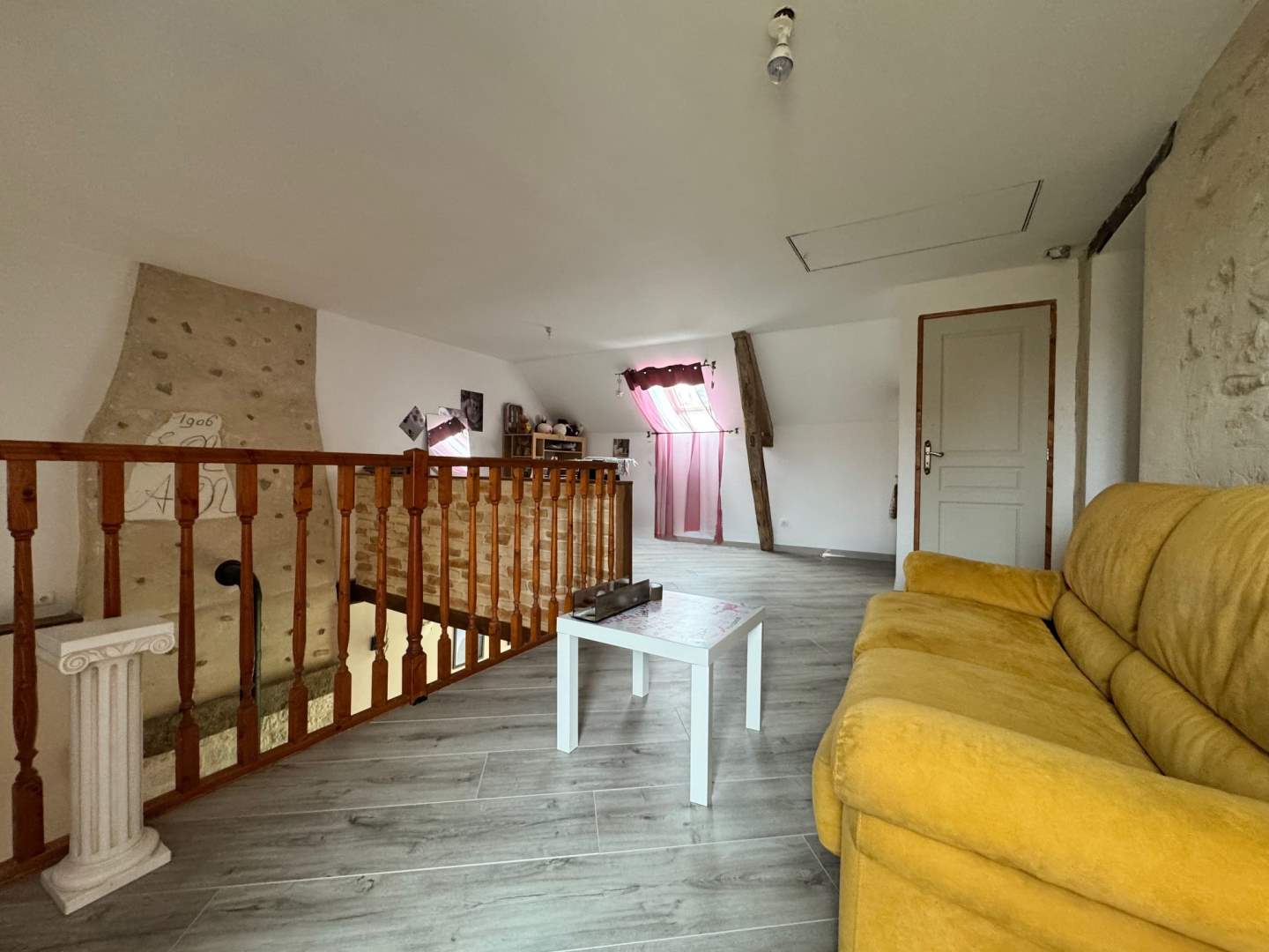 Au premier étage : palier, dégagement, deux chambres avec placards, wc, salle de bains, grande mezzanine.