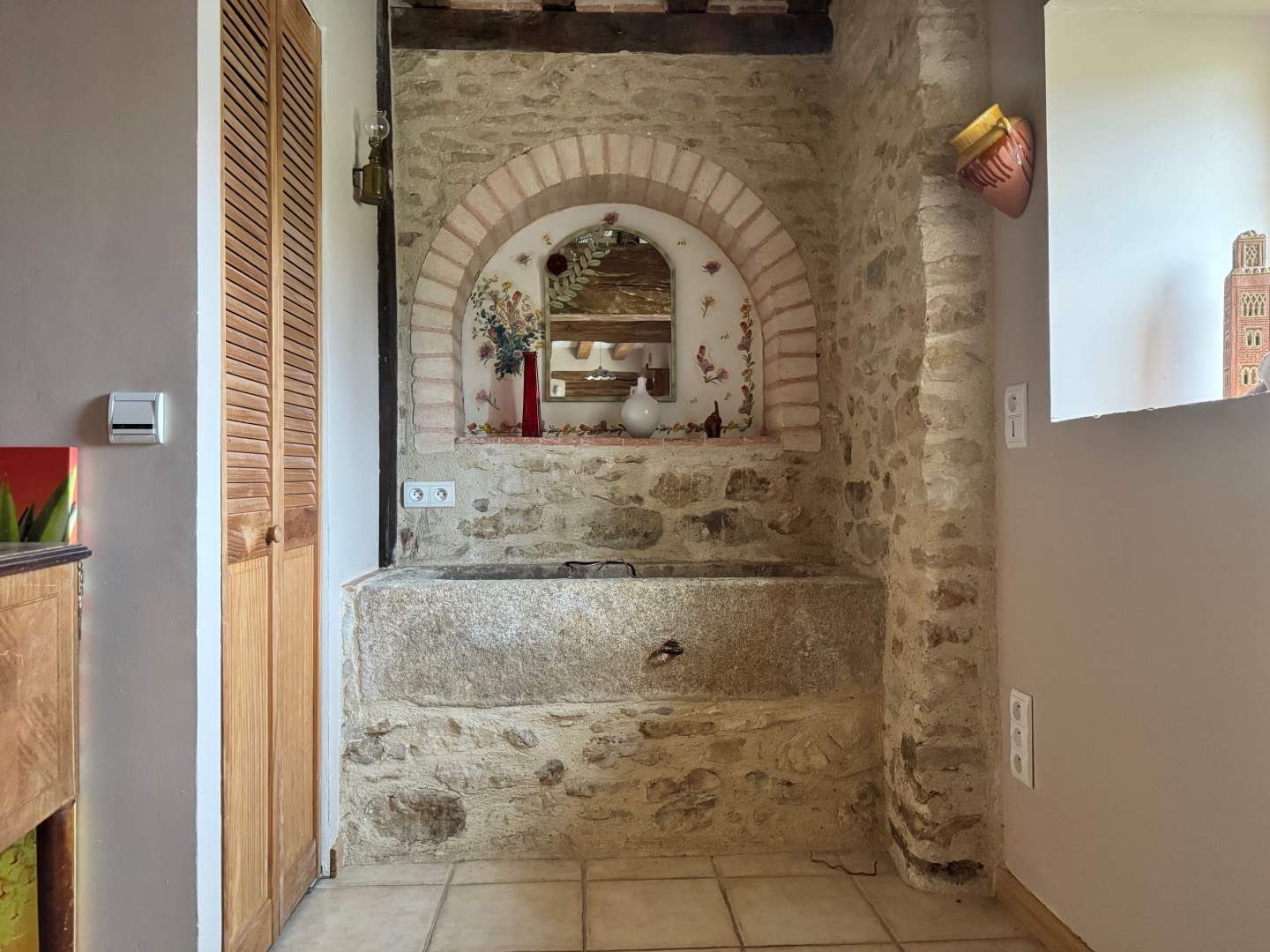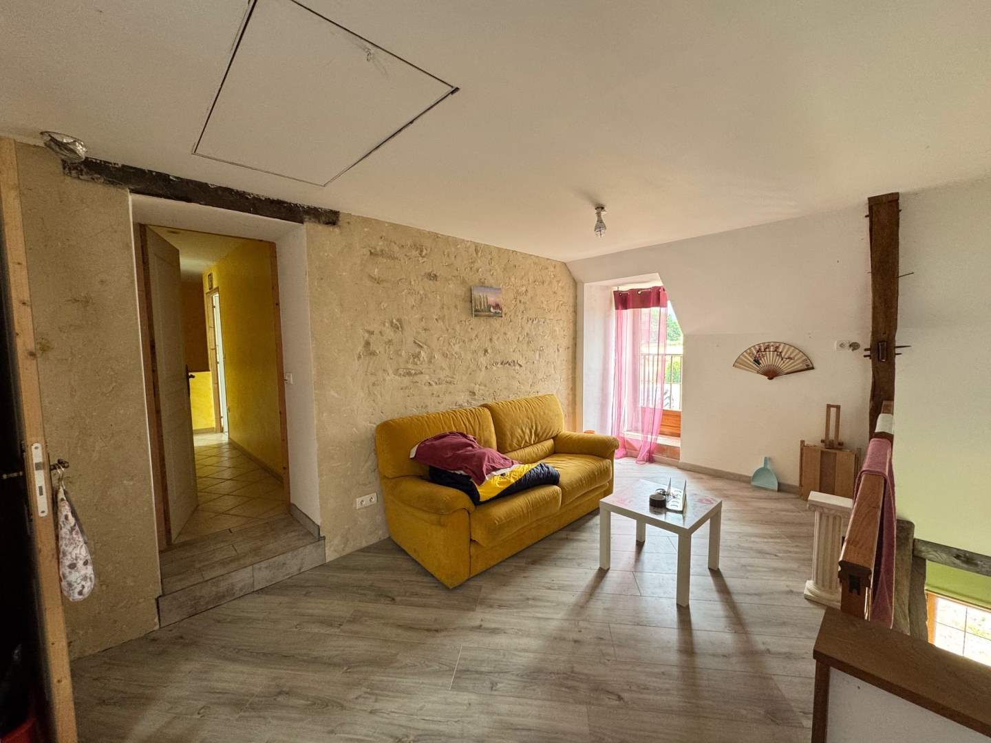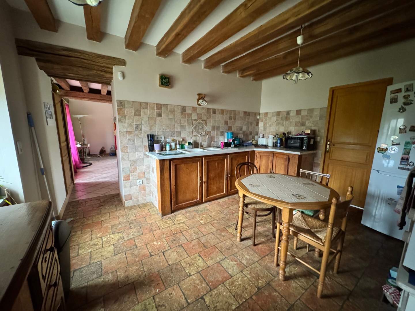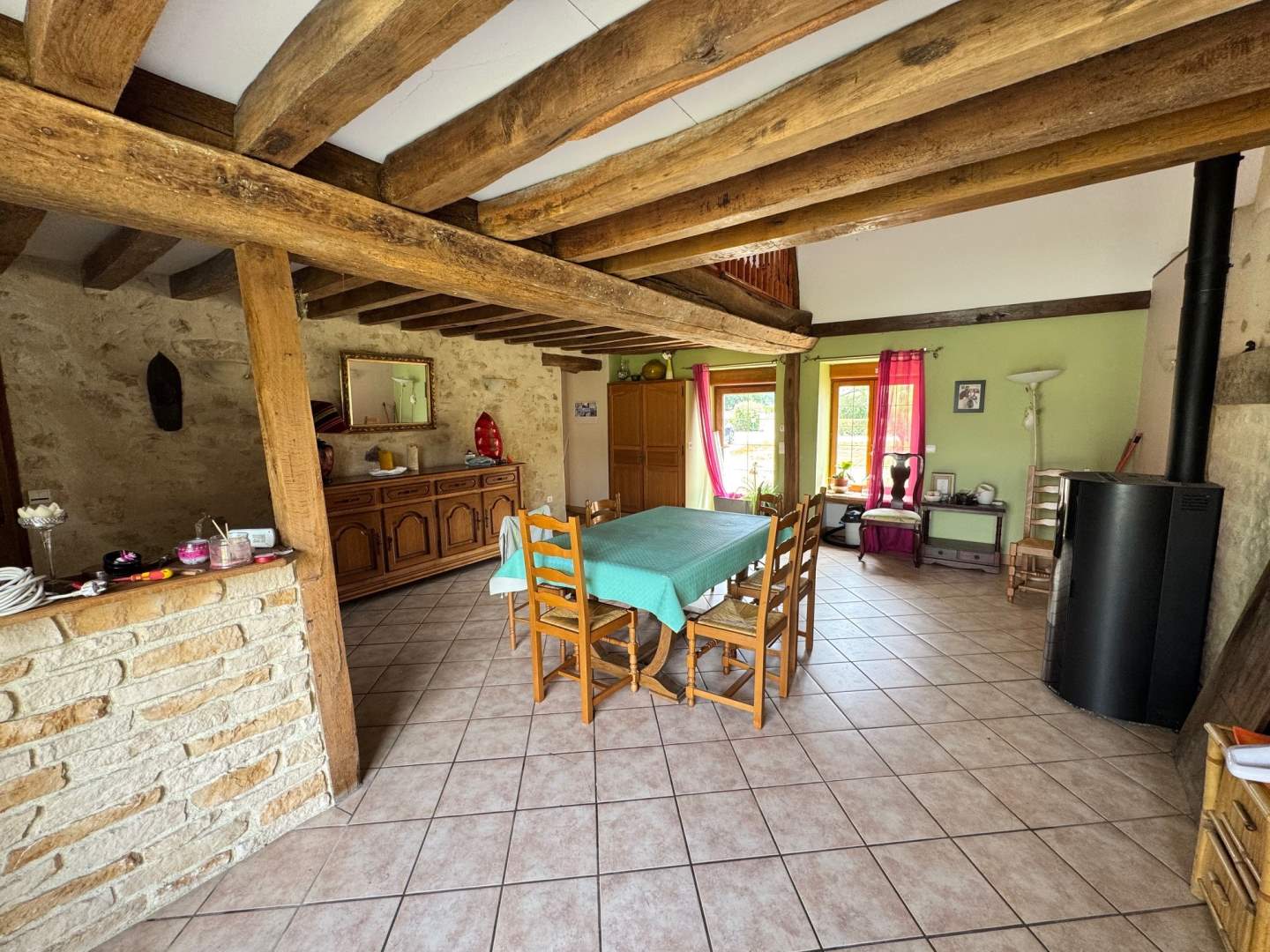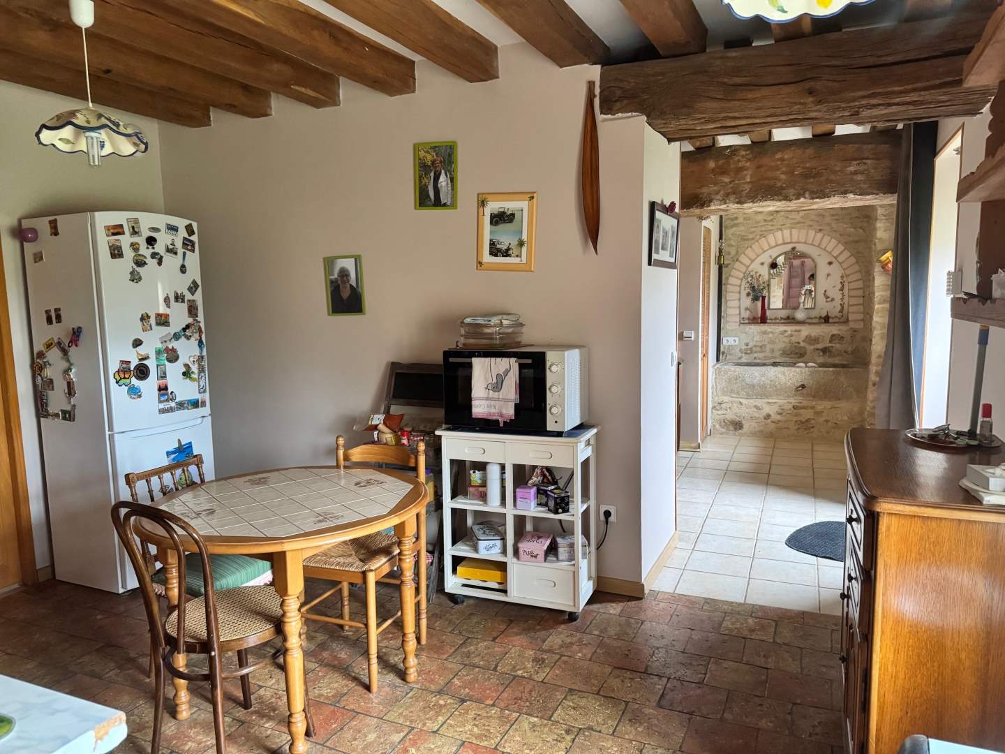 Une maison ancienne, en pierres couverte en tuiles plates, comprenant :