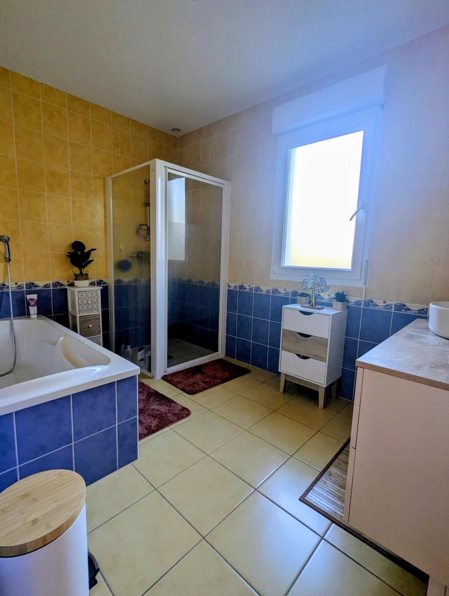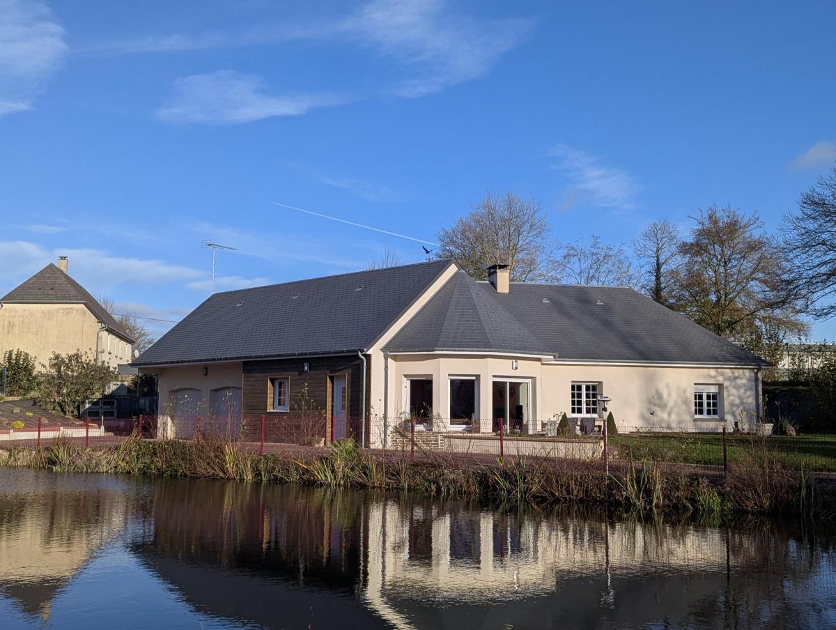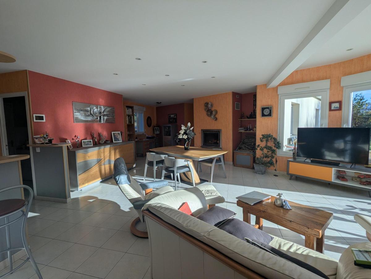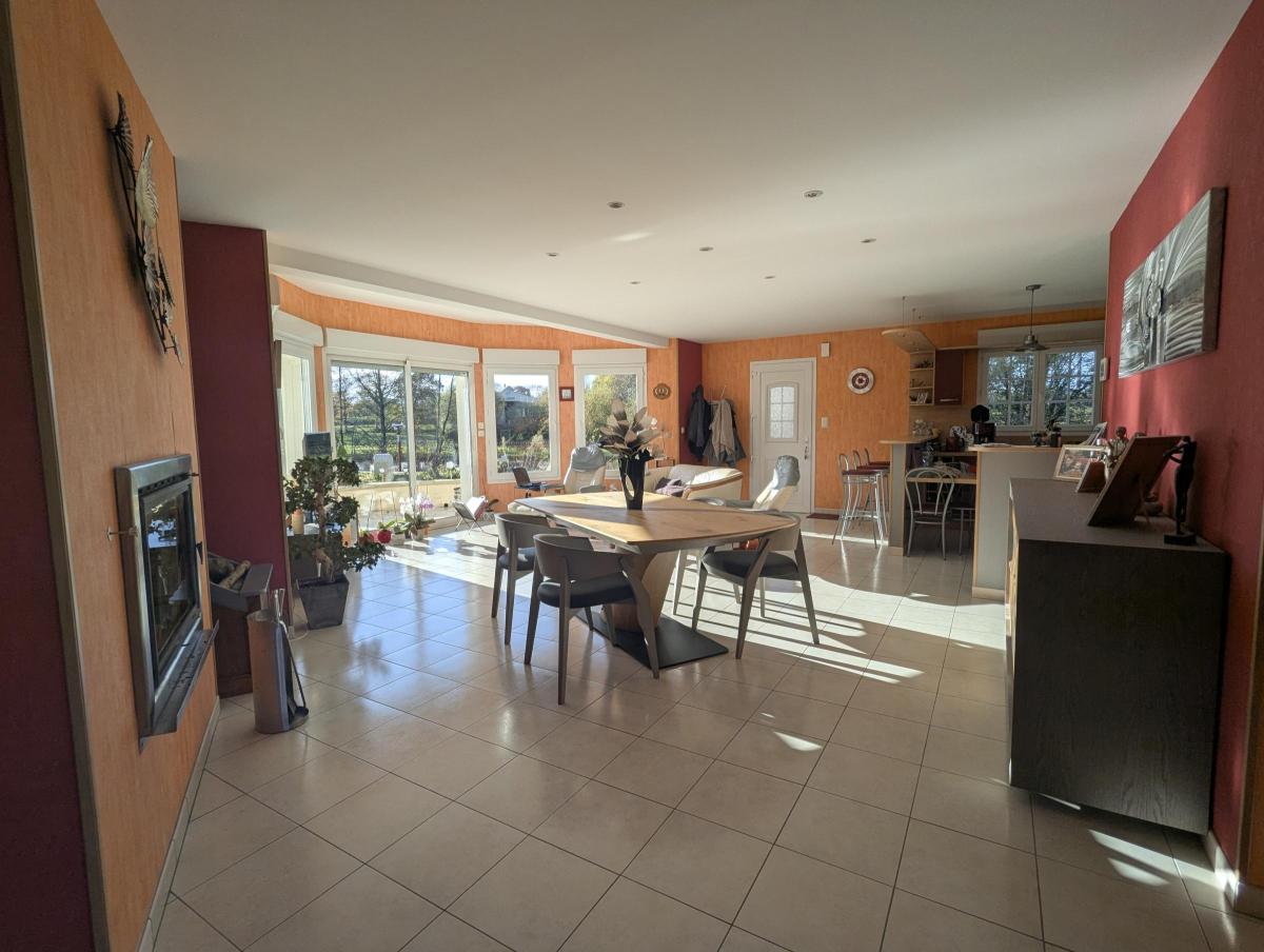 Maison de plain-pied, très lumineuse ,entourée d'un terrain paysager.