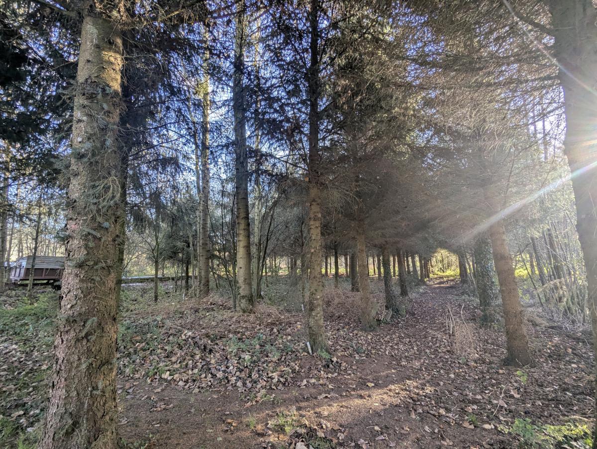Dans un écrin de verdure, propriété de plain-pied avec dépendances et étang – Partie boisée