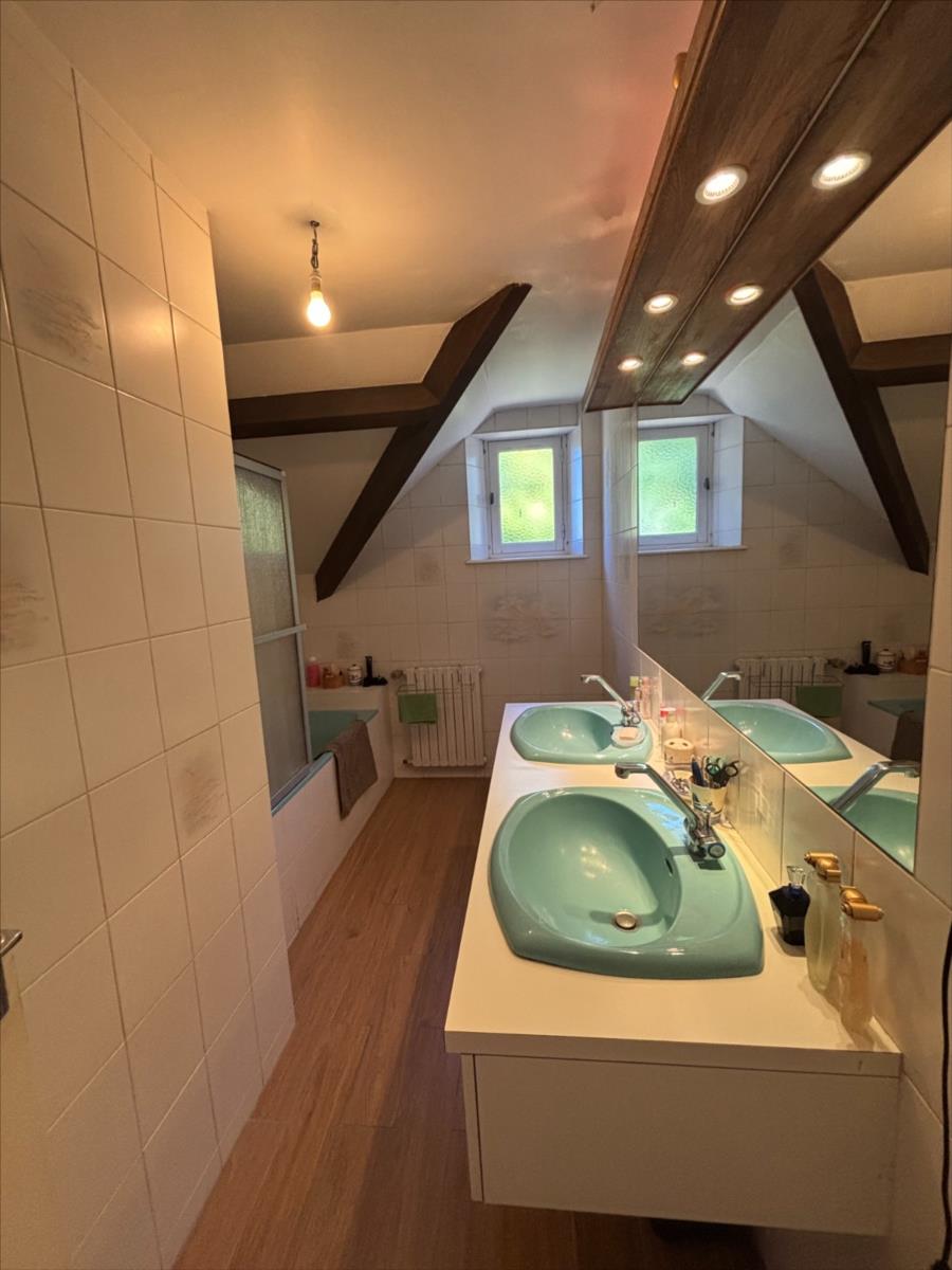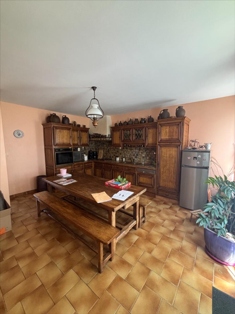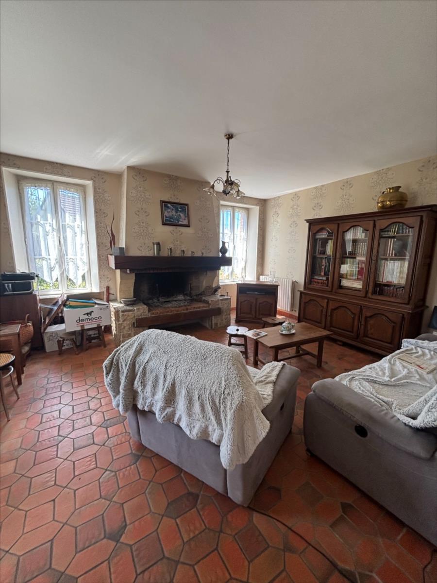 - au rez-de-chaussée : une grande cuisine, salle à manger avec cheminée insert, entrée, salon avec cheminée, salle d'eau.