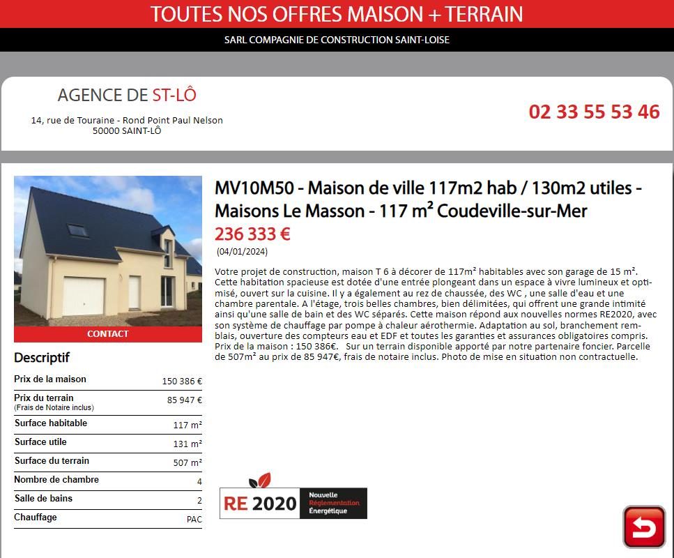 Les terrains sont libres de constructeur, l'étude vous propose en collaboration avec le constructeur ' Maisons Le Masson' deux projets.
