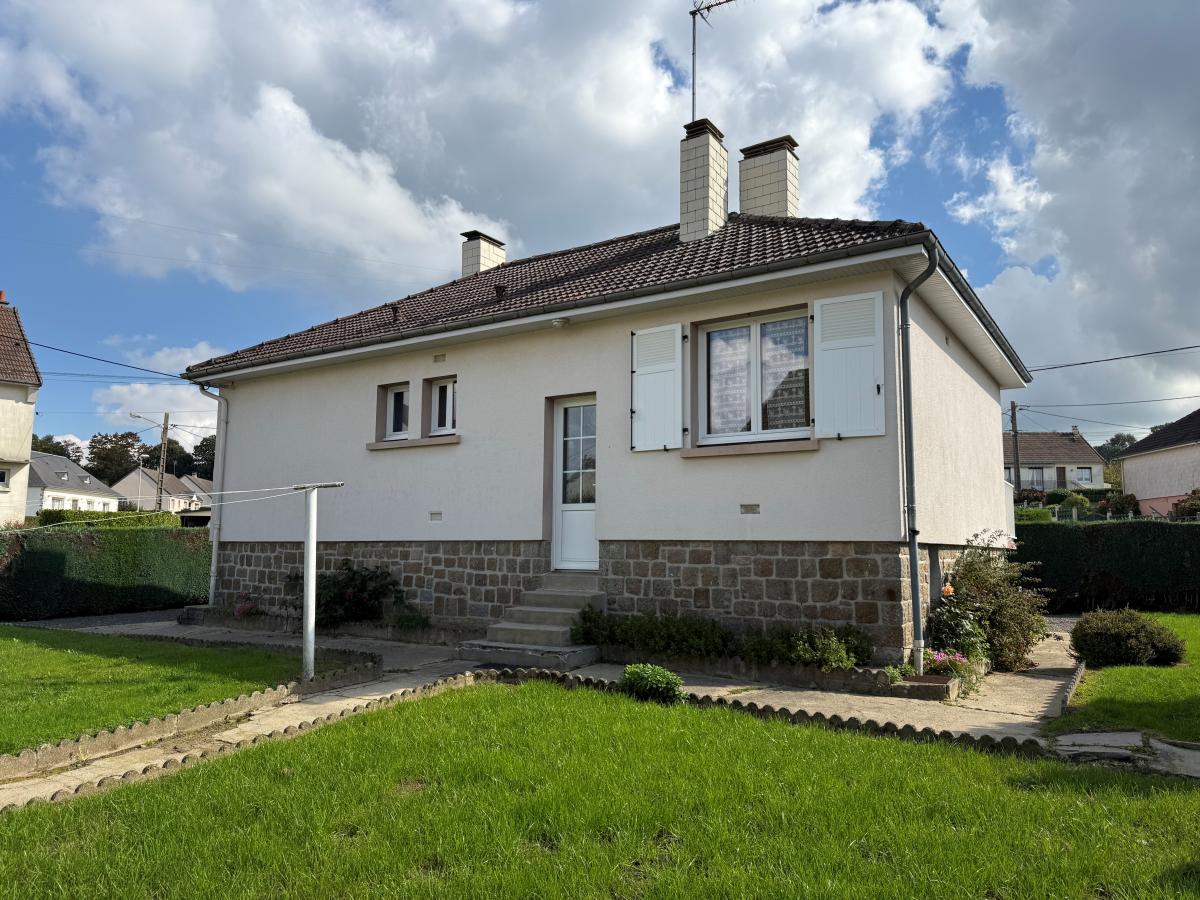 Proche commerces, Maison en bon état, comprenant : Sous-sol : une pièce, salle de bains/WC, pièce avec cheminée, garage ; Rez-de-chaussée surélevé : entrée, séjour salon (conduit de cheminée), cuisine, dégagement, deux chambres, salle d'eau, WC. Grenier. Cour et jardin.