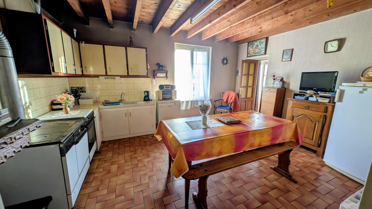 RDC : séjour avec cheminée, cuisine, salle d’eau, WC, buanderie, cellier.