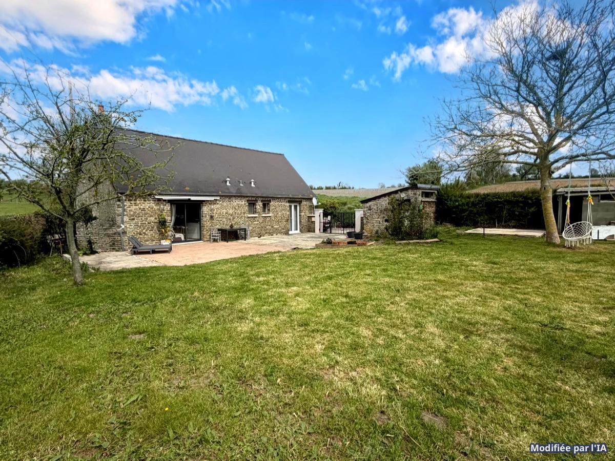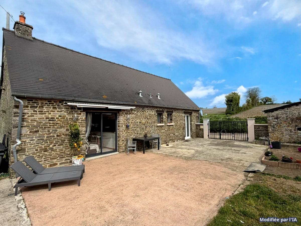 Visite virtuelle disponible, merci de nous demander le lien par mail. PORTBAIL, hameau calme, maison comprenant: - Au rez de chaussée: entrée, séjour avec poêle à granulés et cuisine ouverte aménagée, WC, salle d'eau deux chambres. - A l'étage: une grande chambre en mezzanine et un grand grenier aménageable de 40 m² au sol. Cour devant et jardin derrière avec terrasse, petite dépendance à usage de buanderie et cellier.