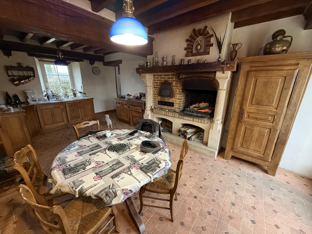 Une maison d'habitation composée de: grand séjour avec poêle à granulés, cuisine aménagée avec cheminée et four à pain, arrière-cuisine, bureau, WC. Au premier étage: deux chambres, salle d'eau avec WC. Au deuxième étage: deux chambres.
