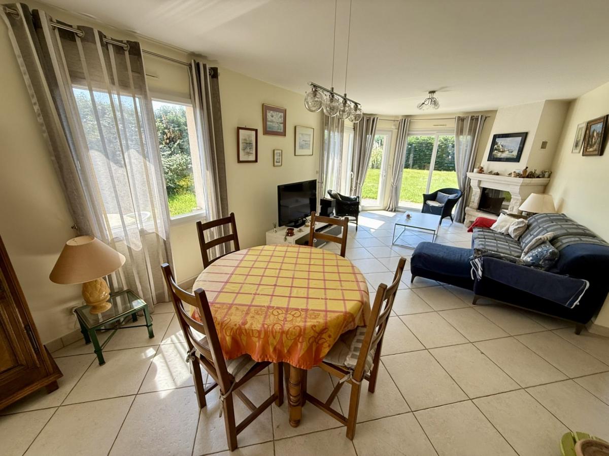 - Au rez de chaussée: entrée avec placard, grand séjour avec cheminée-insert et cuisine ouverte équipée avec ilot, une chambre avec placards, salle d'eau avec douche à l'italienne, WC avec lave-mains, grande arrière-cuisine/buanderie.
