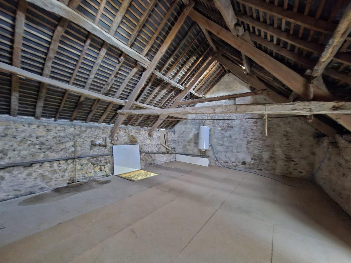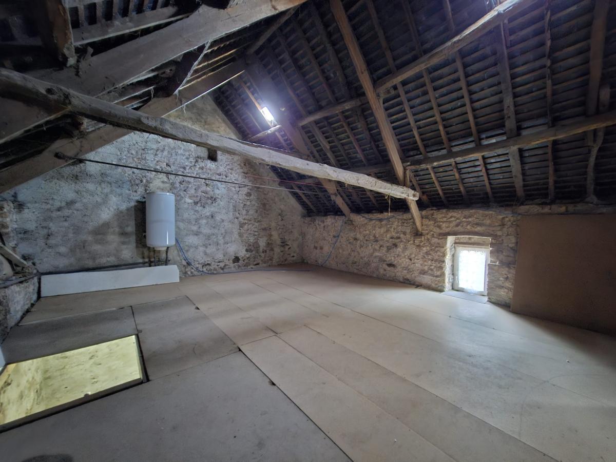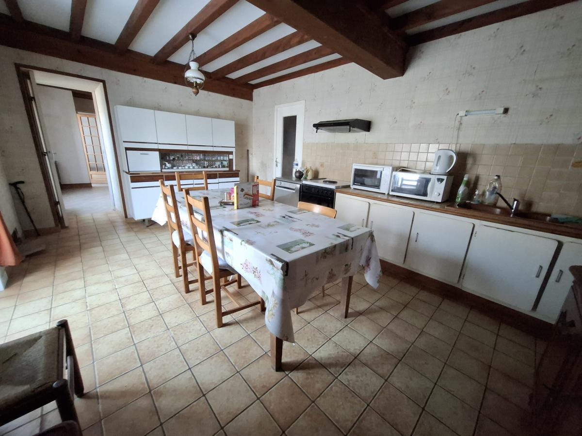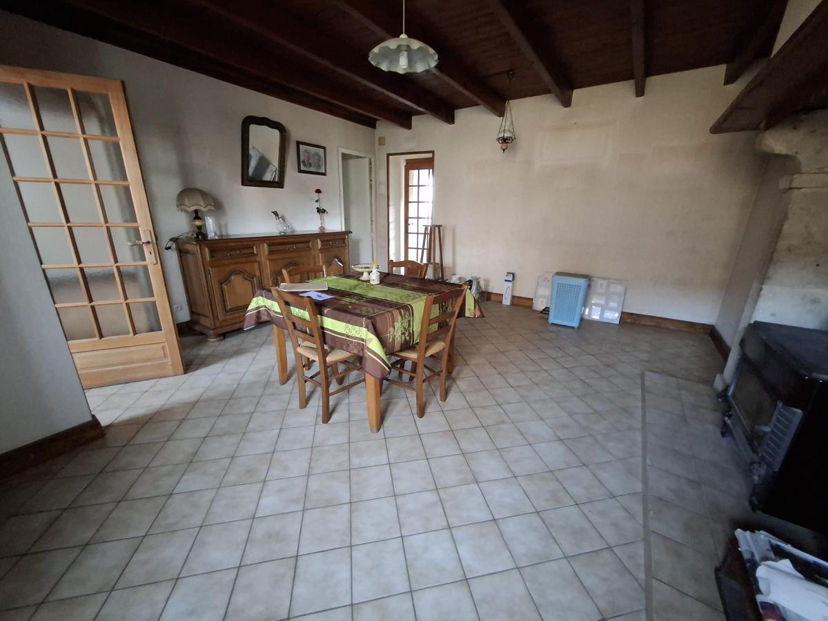 MAISON D'HABITATION comprenant : - au rez-de-chaussée : cuisine, salle d'eau, séjour avec poêle à bois, entrée, 2 chambres, arrière-cuisine, toilette, 2 celliers. - grenier au dessus. Courette sur l'avant. Jardin sur l'arrière avec garage et ancienne boulangerie.