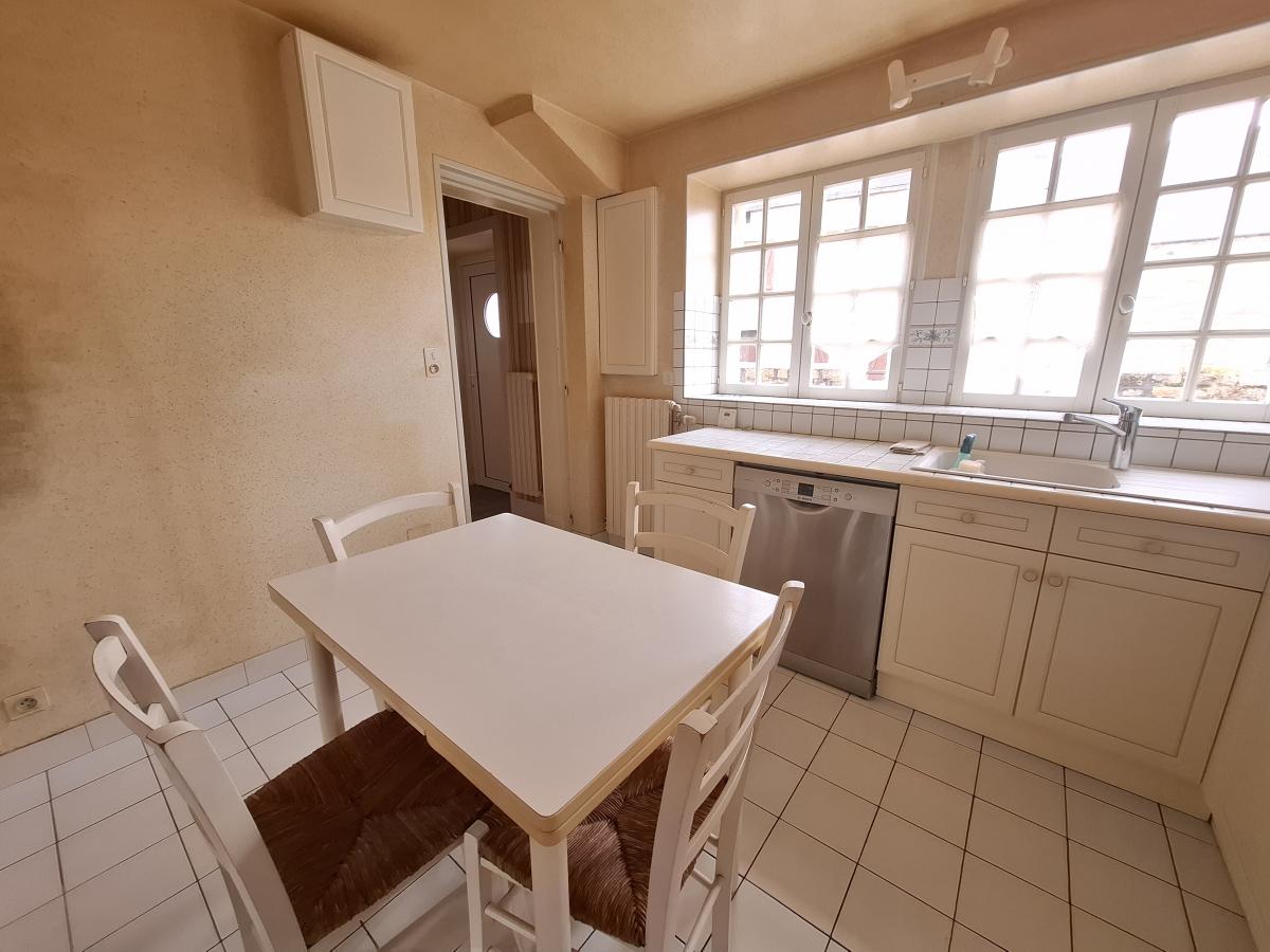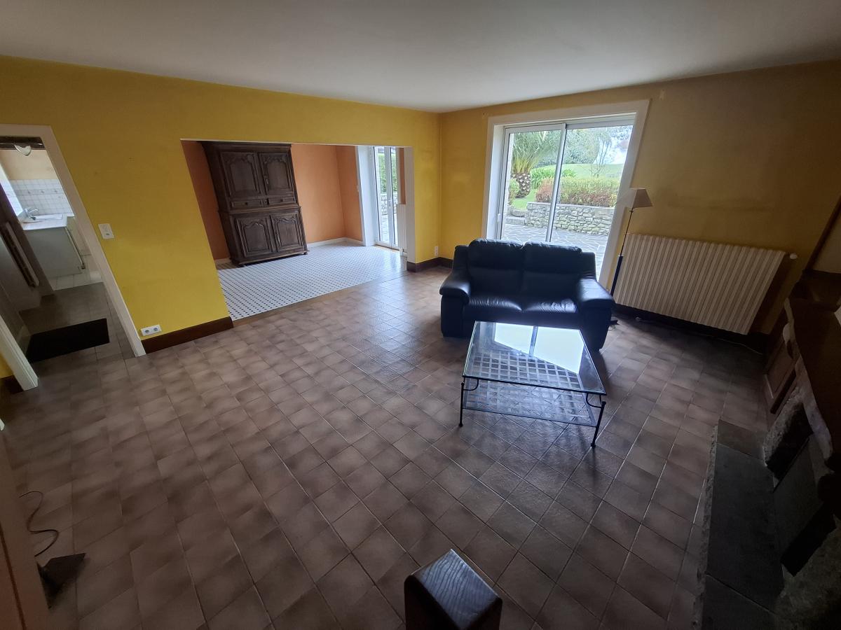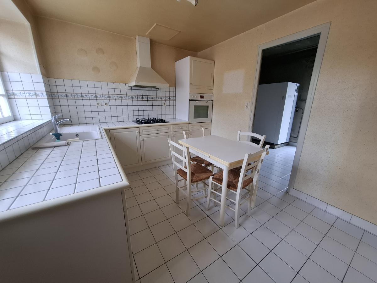 - au rez-de-chaussée : entrée, cuisine, cellier (buanderie/chaufferie/douche/toilette), séjour-salon avec cheminée foyer ouvert.