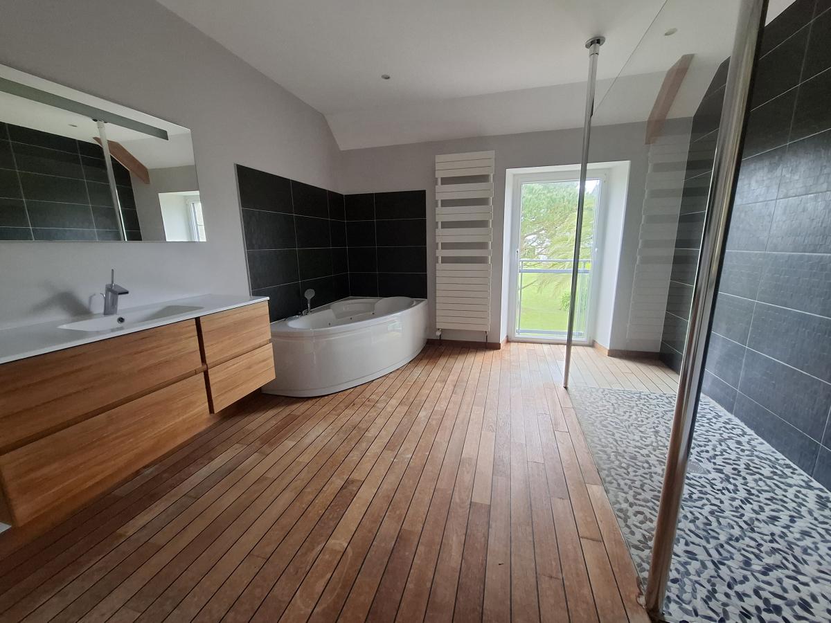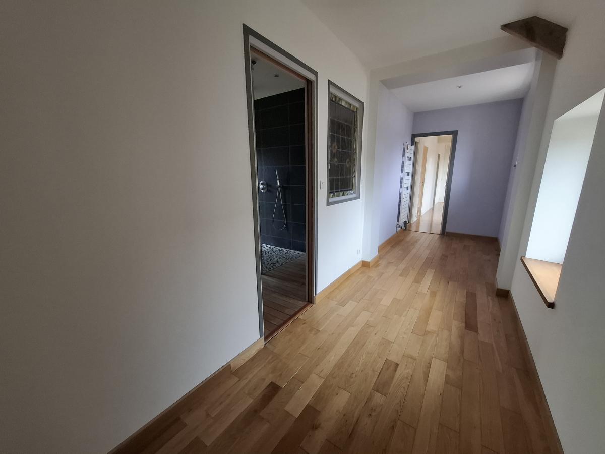 - à l'étage : dégagement, 3 chambres, pièce passagère, salle d'eau (douche et baignoire).