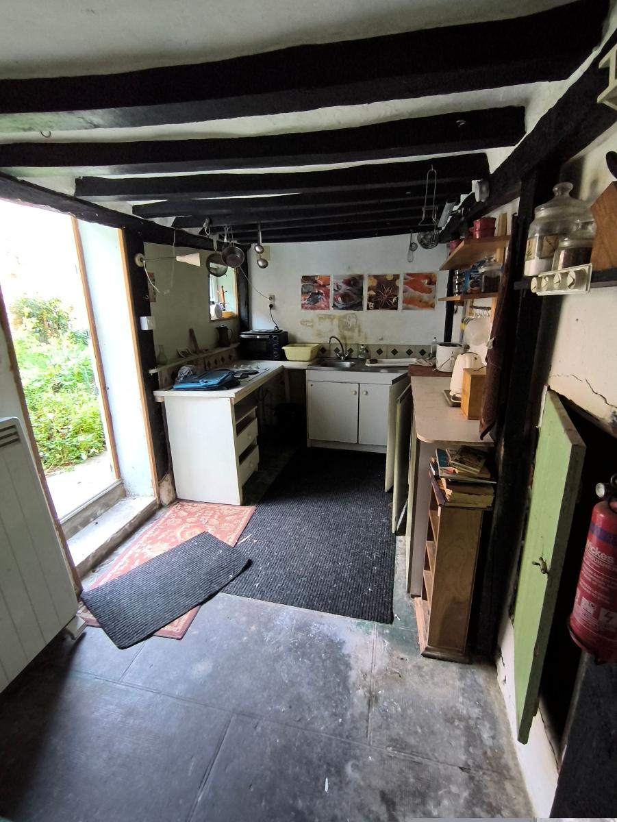 Au coeur du quartier médiéval, Maison de 3 pièces principales avec courette. Le rez-de-chaussée comprend un séjour avec poêle à bois, cuisine, salle de bains avec wc. Au 1er étage : une chambre et une pièce. Abri de jardin en dépendance attenante. Courette.