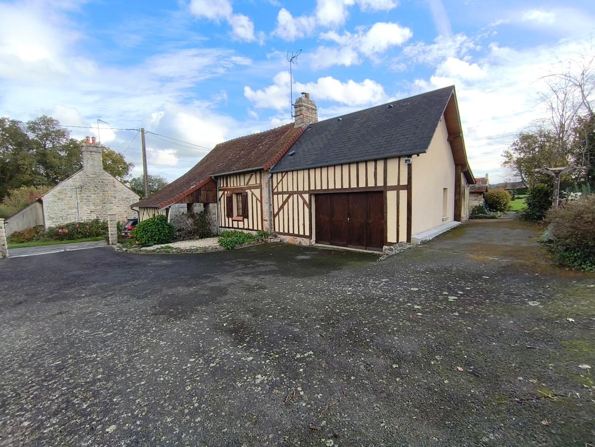A proximité de Domfront, dans hameau en campagne, maison de 5 pièces principales et véranda, avec dépendances sur env. 2.000 m² de terrain.