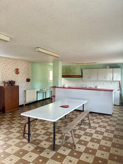 -Une construction attenant comprenant une pièce avec coin cuisine (52 m²) au rez-de-chaussée; 2 anciens bureaux et sanitaires au rez-de-jardin.