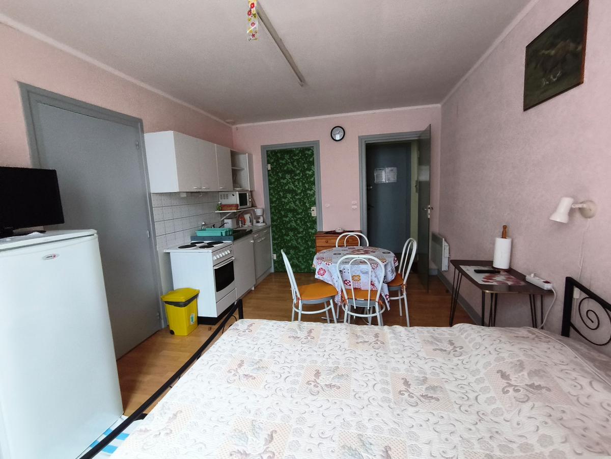 -un studio avec kitchenette, salle d'eau et wc. Classe énergie D.