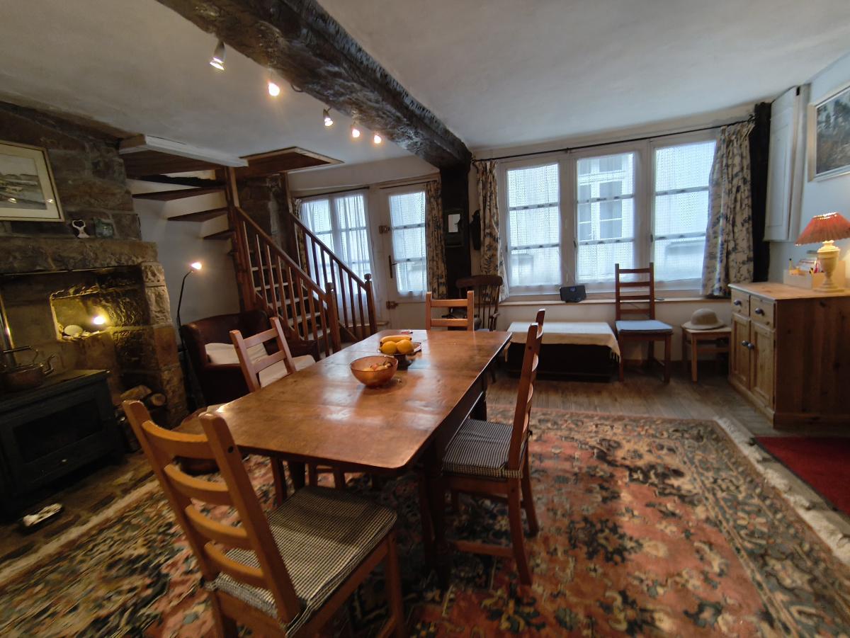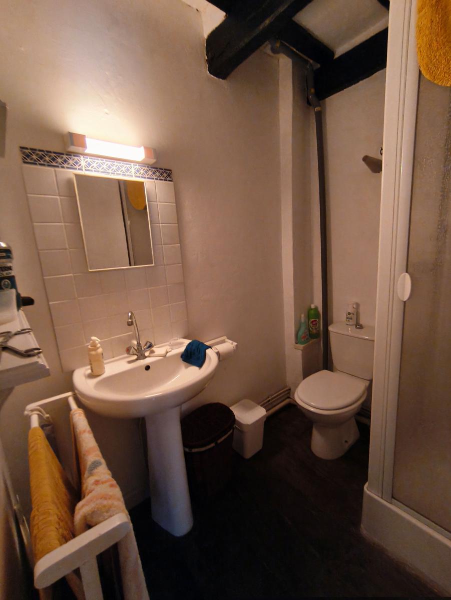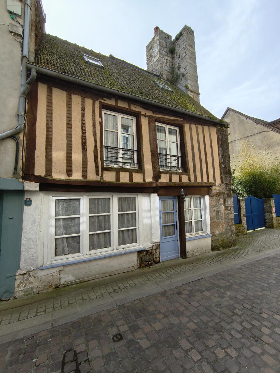 Quartier médiéval, maison de 4 pièces principales avec courette. Le rez-de-chaussée est composé d'un séjour-cuisine et buanderie. Le 1er étage est composé d'un salon, une salle d'eau avec wc. Le 2ème étage (accessible par un escalier commune avec la maison voisine) comprend 2 chambres, salle d'eau avec wc; Courette à proximité. DPE : F.