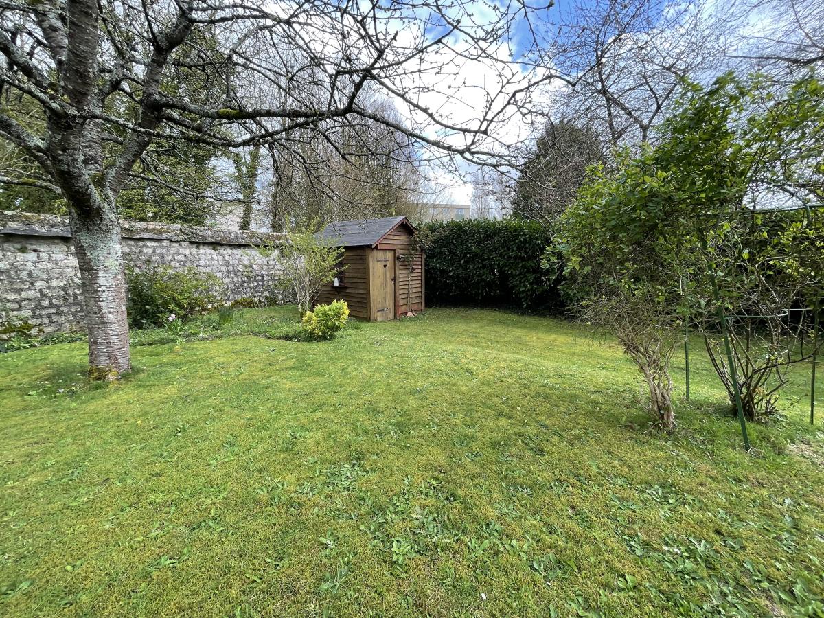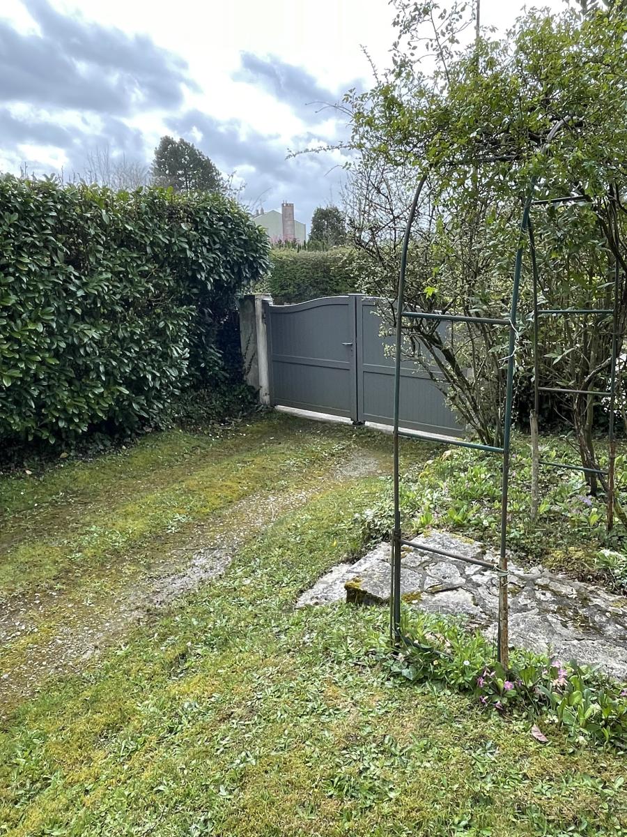 Joli jardin de 500 m² entièrement clos avec abri. Possibilité de rentrer les véhicules sur le terrain.