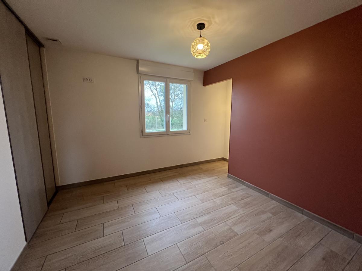 Belle pièce de séjour de 61 m² avec grandes baies vitrées (cuisine équipée, séjour et salon avec poêle à bois), 3 chambres, salle d'eau, WC, buanderie.