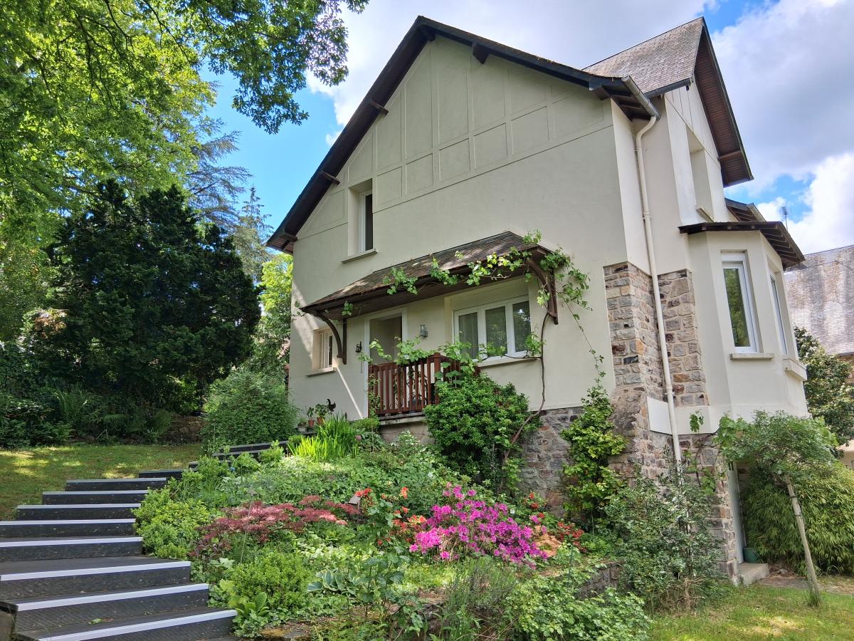 Confortable Maison bagnolaise, commerces accessibles à pied : RDC : entrée - cuisine aménagée - séjour-salon bow-window (parquet) - WC ; A l'étage : palier - trois chambres dont une avec placards - salle de bains avec WC - Grenier. S/sol divisé en bureau - cave - garage - buanderie. Menuiseries PVC, chauffage central gaz de ville (chaudière récente 4 ans), Garage à l'écart d'une superficie de 54 m², sur dalle béton (construction de 2012) isolé, porte motorisée, menuiseries PVC. Parc arboré de 2.000 m². Propriété divisible en deux lots : première partie : la maison avec 1000 m² de terrain environ pour un prix de 260.000 € ; seconde partie : terrain d'environ 1000 m² avec garage en ossature bois (CU permettant soit la construction d'une maison ou la transformation du garage existant en une maison d'habitation) prix : 54.200 €.
