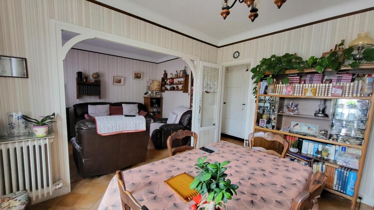 En centre ville avec tous commerces, immeuble comprenant : Au rez-de-chaussée local commercial d'environ 100 m² en bon état comprenant une pièce avec ancienne vitrine, dégagement avec wc et quatre pièces, réserve ; au 1er étage et par accès indépendant : appartement loué d'environ comprenant : au rez-de-chaussée : deux garages cimentés; entrée avec escalier donnant sur le 1er étage : cuisine aménagée, séjour, salle de bains avec wc ; à l'étage : couloir et dégagement avec douche, deux chambres, bureau ; chauffage au gaz de ville; sous-sol avec chaudière au gaz ;