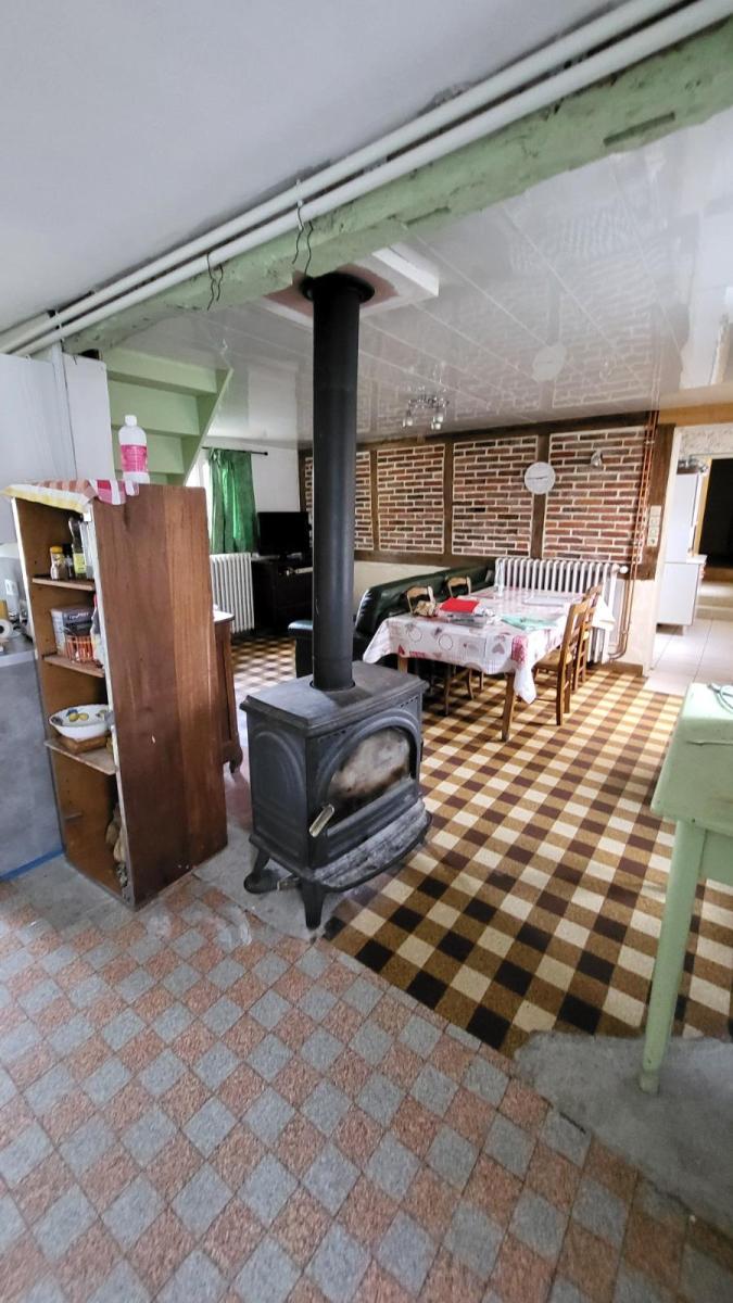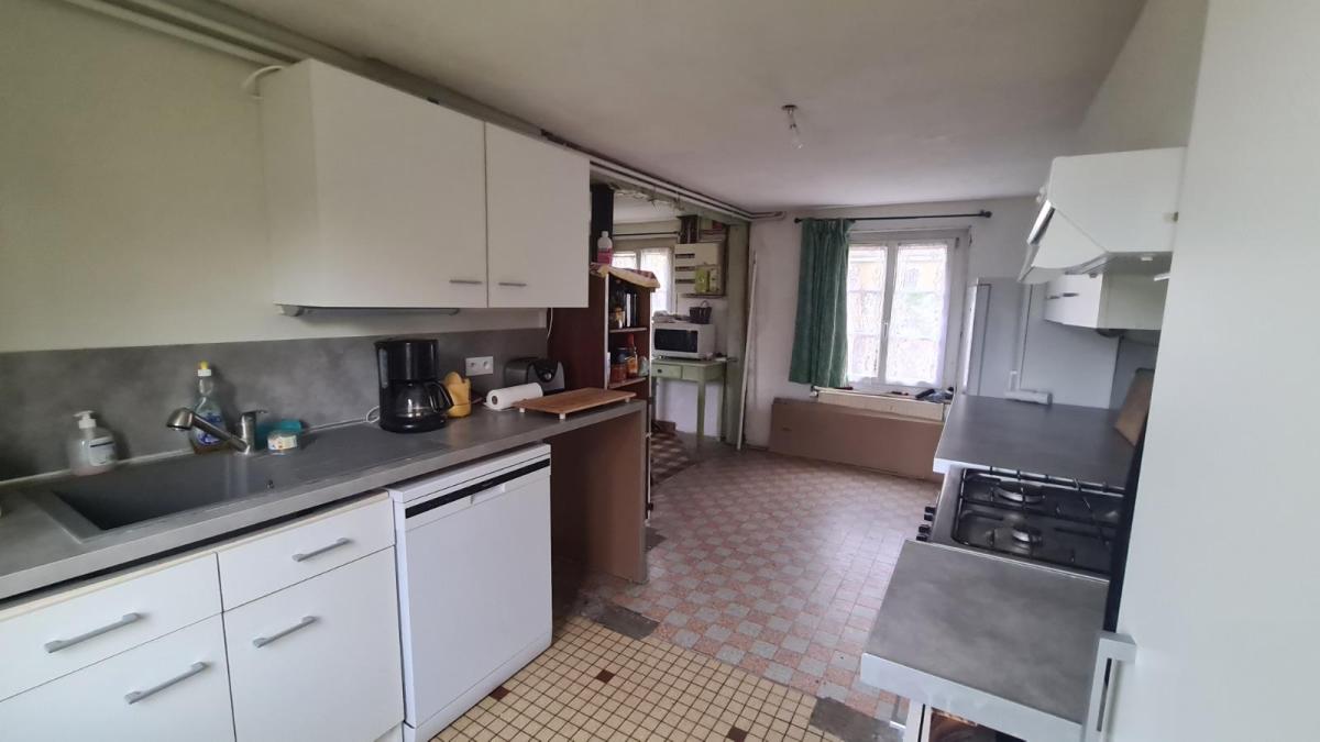 En sortie de petite ville avec commerces, dans un quartier au calme, maison comprenant : cuisine aménagée, séjour avec poêle à bois, dégagement, deux chambres, salle de douche avec douche à l'italienne, wc séparés ; à l'étage : petit palier desservant deux chambres mansardées et wc broyeur avec lave-mains. Belles dépendances en brique et pierre; garage. Les informations sur les risques auxquels ce bien est exposé sont disponibles sur le site Géorisques : www. georisques. gouv. fr