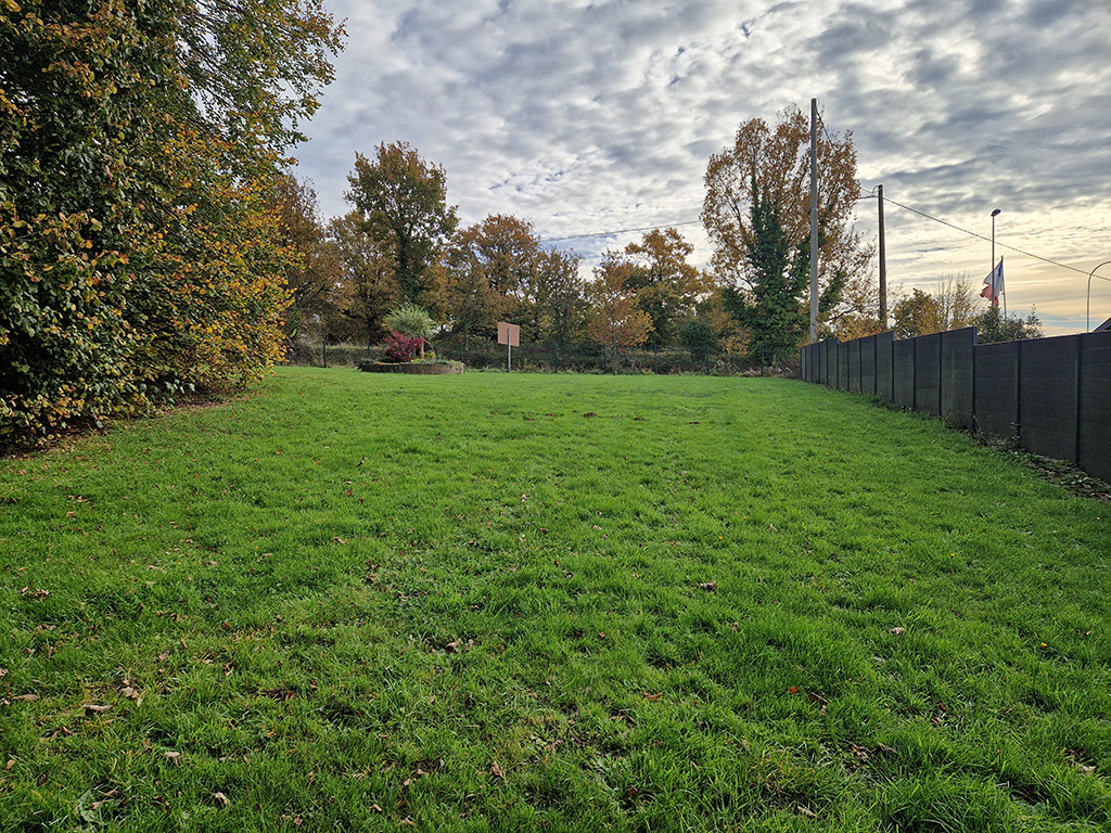 Un terrain clos entoure la propriété, offrant un environnement sécurisé et verdoyant, propice à la détente ou à l’accueil d’un animal de compagnie.